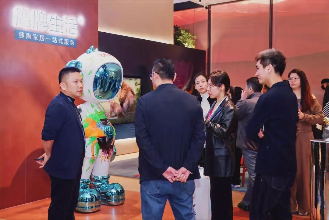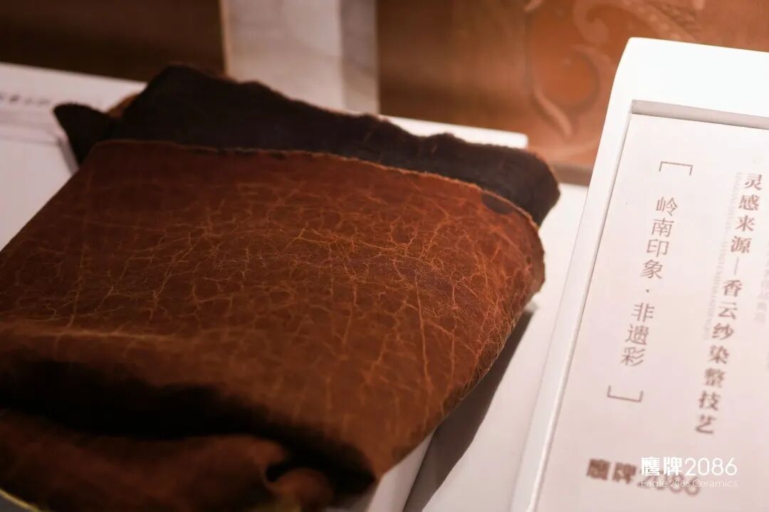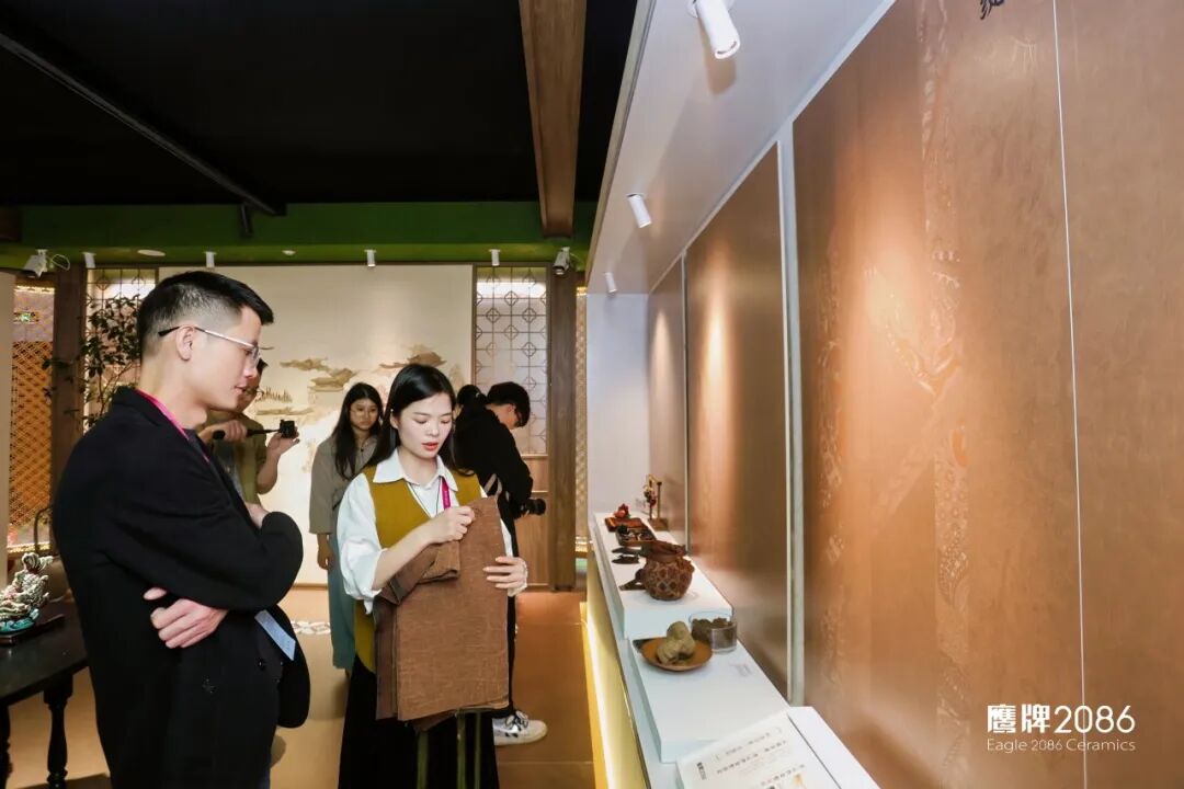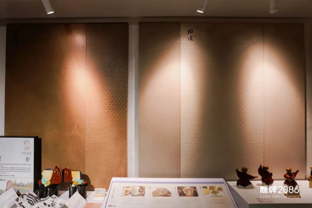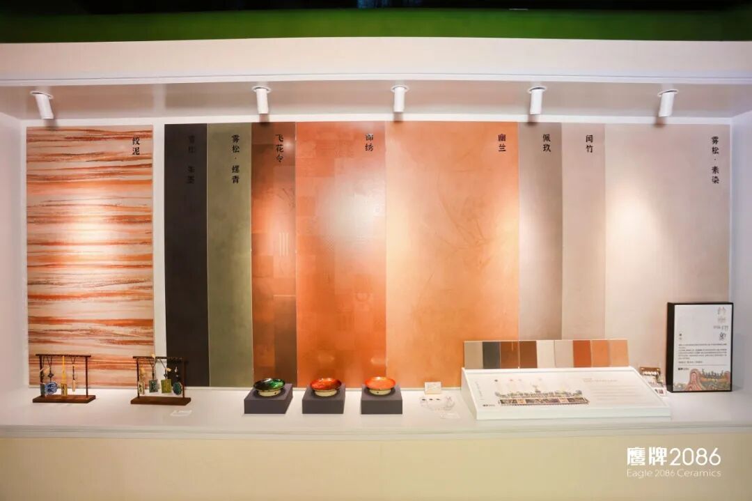 为更真实展现产品在空间中的运用,本次设计周,岭南印象除了在鹰牌2086展示以外,同时被运用到鹰牌生活“给生活的礼物”展馆和国际知名设计师覃思先生策展的「奢华居所」主题馆,以更具文化感和设计感的姿态融入现代化、国际化、高端奢华的家居空间设计中。
