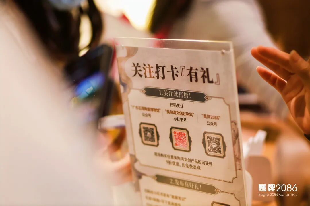 本次展会上,鹰牌2086携手广东石湾陶瓷博物馆、佛山民间艺术社的跨界联动,呈现了一场好玩有趣的文创体验活动。不仅给观众带来了满满的情绪价值,还能传达鹰牌2086品牌保持年轻化发展的决心。