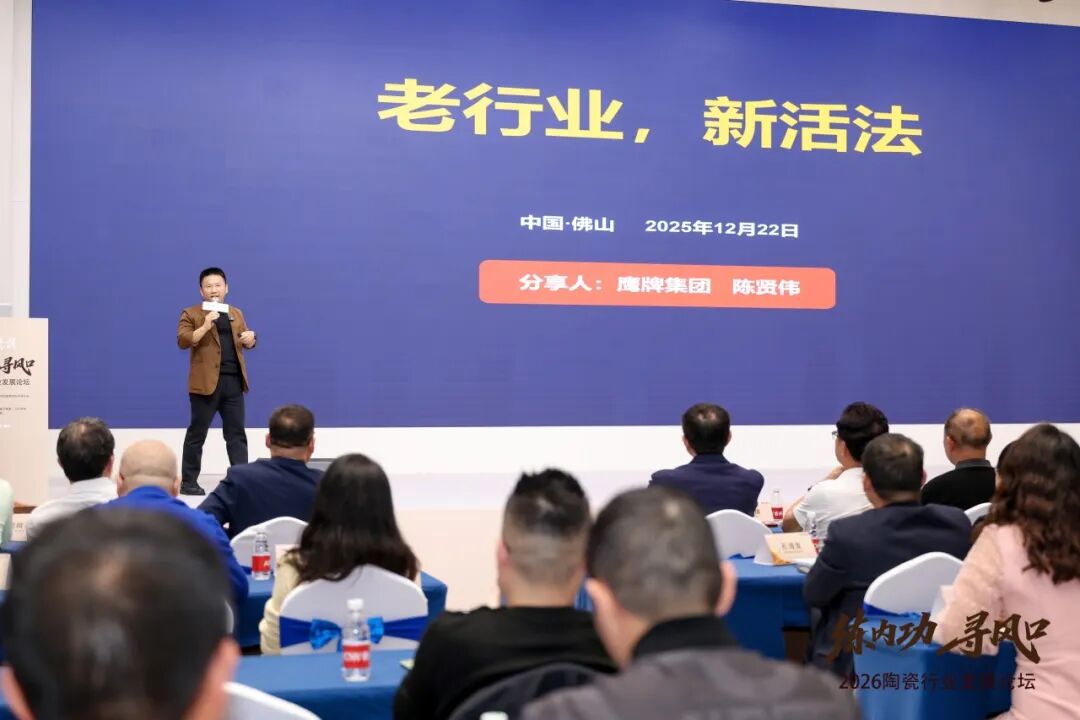 本次陶瓷行业发展论坛,鹰牌实业总裁陈贤伟受邀出席,并以主讲嘉宾的身份发表主题演讲,为陶瓷行业高质量发展注入新思路。陈贤伟总裁结合鹰牌集团多年深耕行业和多次转型升级的实践经验,深入剖析了当下陶瓷行业面临的机遇与挑战。他指出,行业洗牌加速的当下,“练内功”是企业立足的根本,“寻风口”则是企业突围的关键,企业要敏锐捕捉消费新趋势,以创新驱动品牌价值提升。