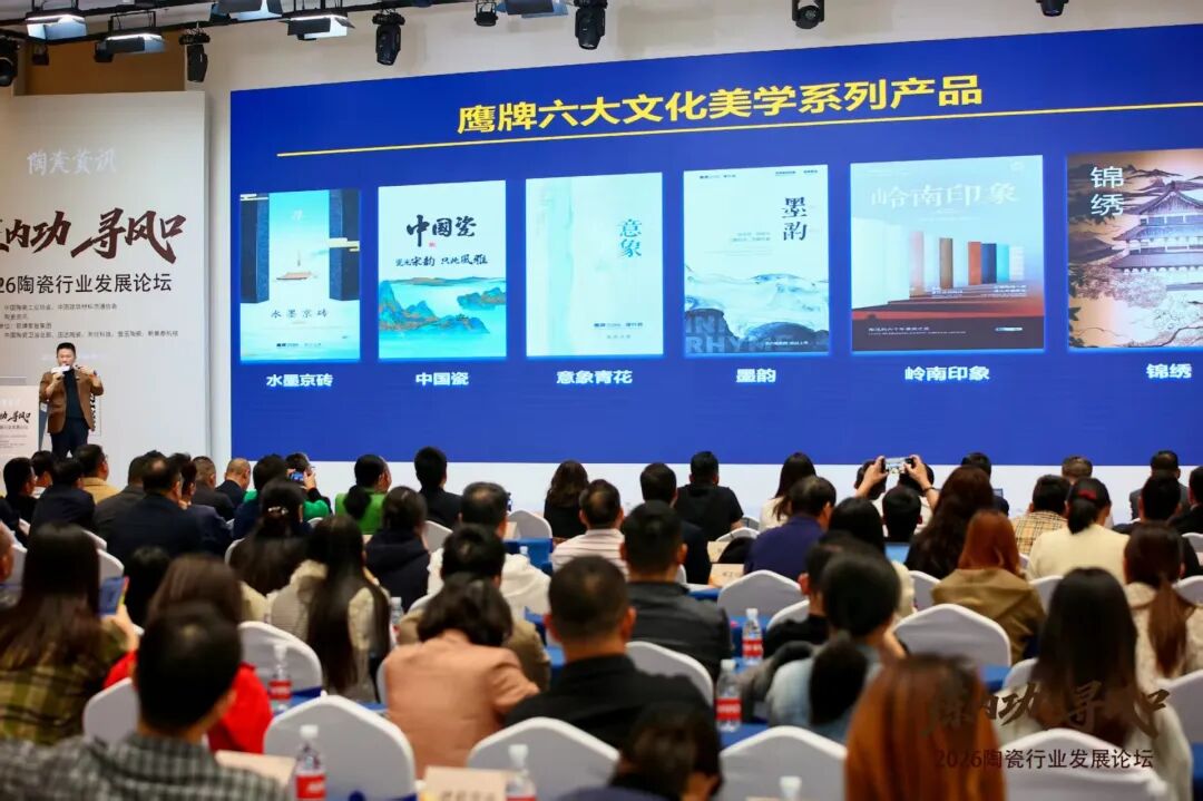 同时,陈总结合鹰牌集团自身的发展历程与创新实践,分享了旗下五个品牌如何通过差异化路径协同发展,共同实现了从陶瓷产品到大家居生态的战略跨越。其中,鹰牌2086作为集团旗下高端瓷砖品牌,选择切入一条更具差异化壁垒的赛道:通过原创设计赋予瓷砖情感价值与审美身份,推动产品从“基础建材”向“空间装饰艺术品”升级,以独特的文化叙事与东方美学价值跳出低价竞争陷阱,实现了品牌声誉与市场效益的双赢。