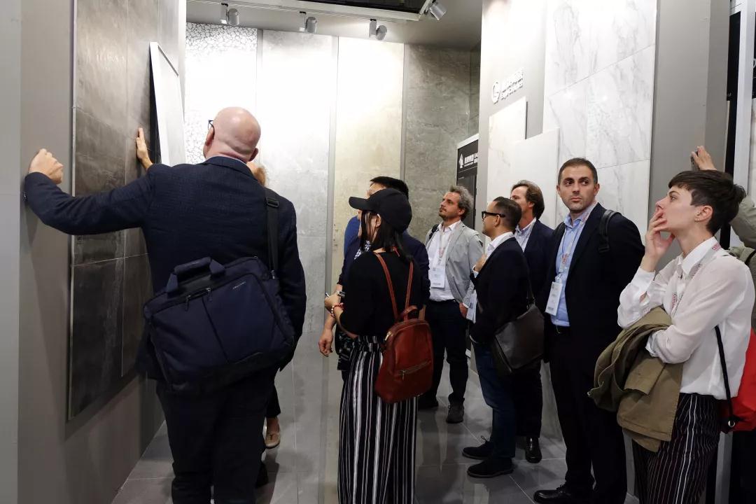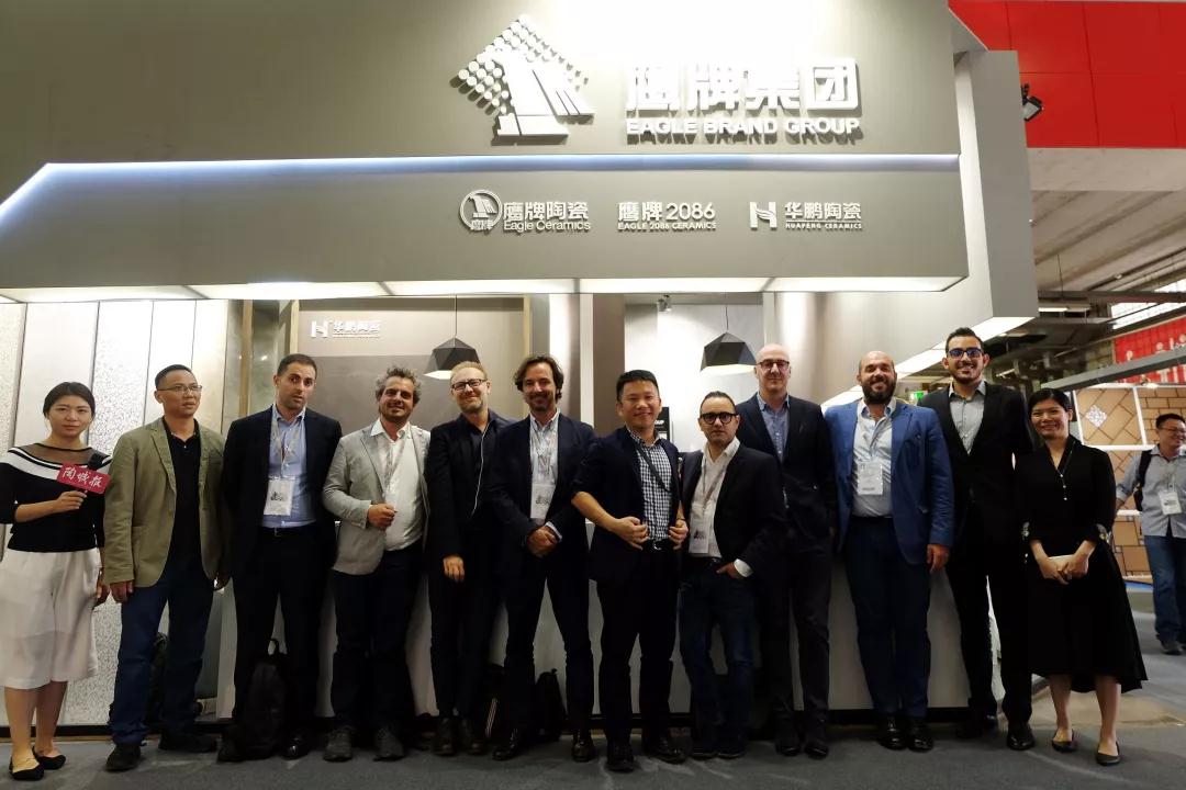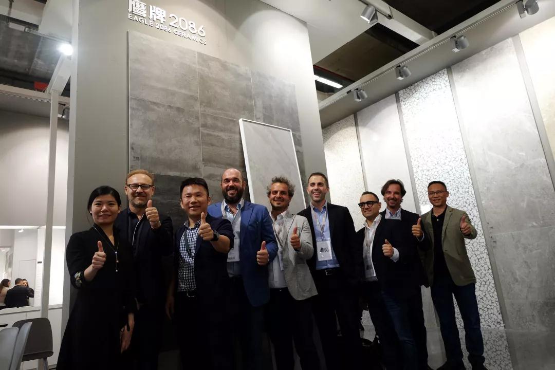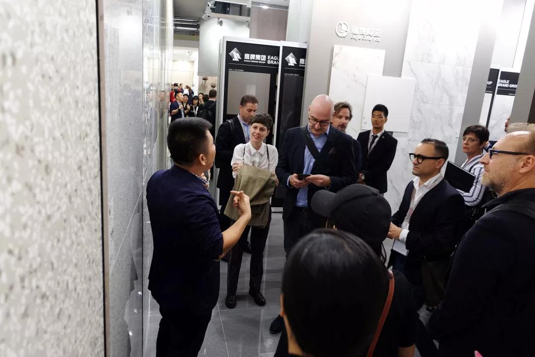 意大利设计师们在参观鹰牌展位的过程中表示,最让他们惊喜的是鹰牌2086的核心产品——水墨京砖。
