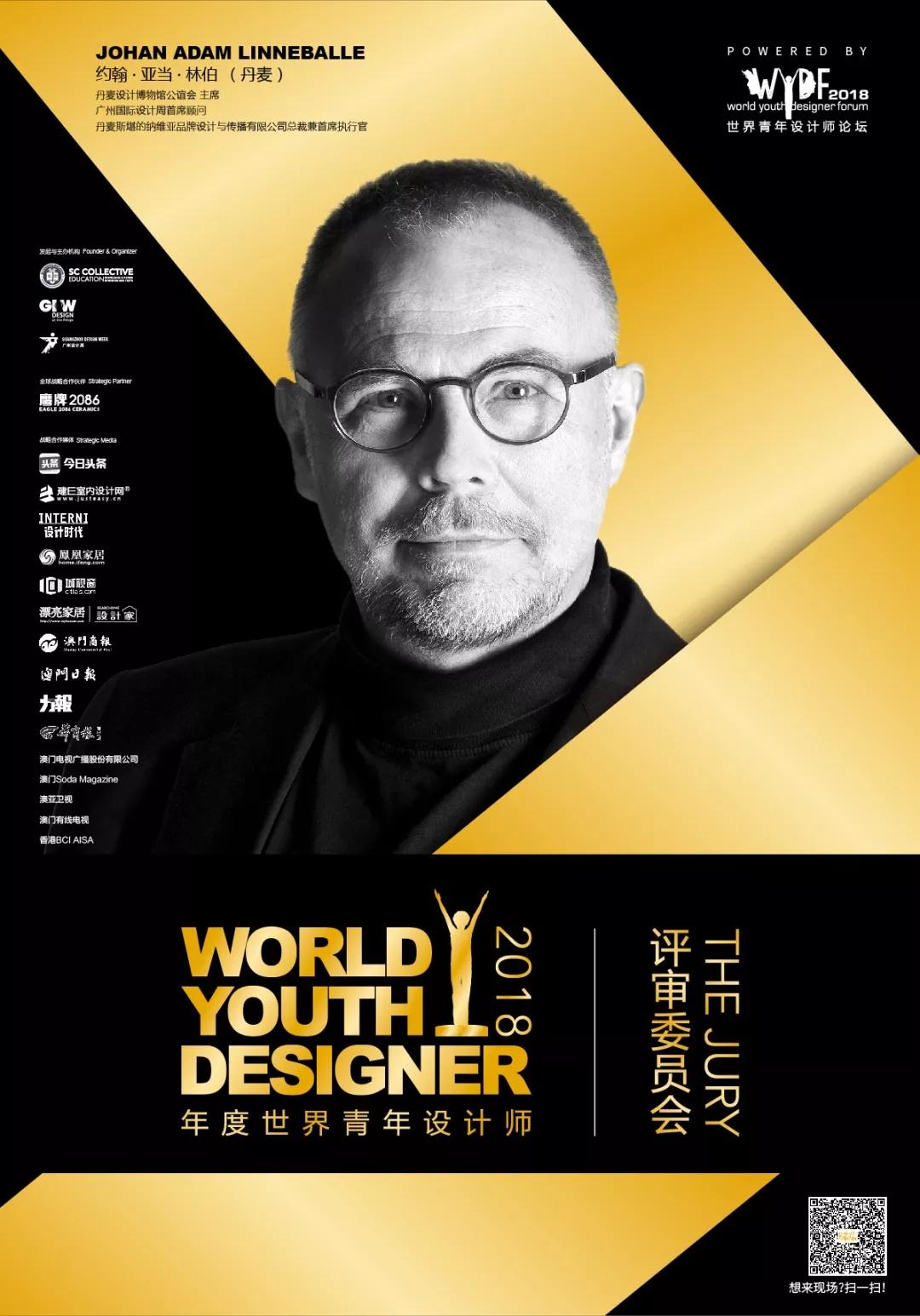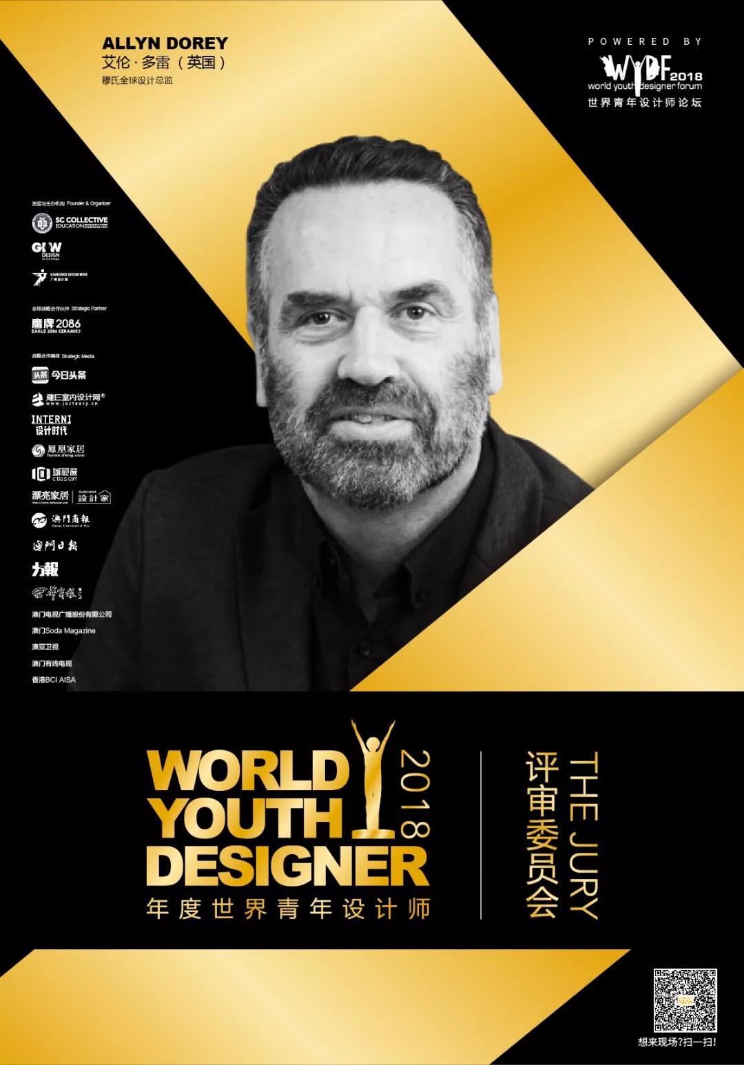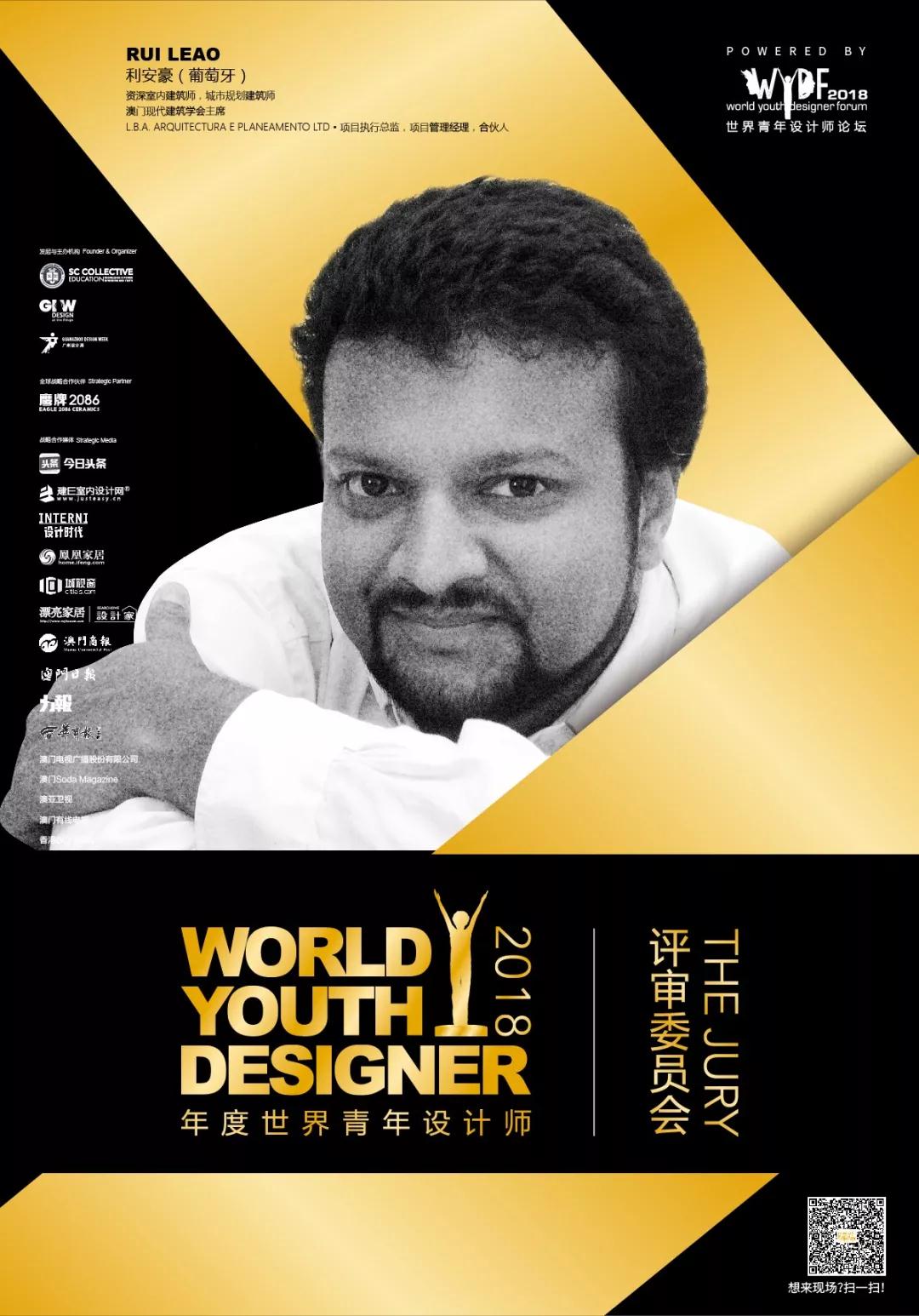 来自英国穆氏全球设计总监Allyn Dorey(艾伦·多雷);丹麦设计博物馆公谊会主席、INDEX发起人、丹麦斯堪的纳维亚品牌设计与传播有限公司总裁兼首席执行官Johan Adam Linneballe(约翰 · 亚当· 林伯);法国的国立图卢兹高等农学院建筑学硕士、筑土国际总建筑师Olivier Vignes(郭而立);葡萄牙的L.B.A. ARQUITECTURA E PLANEAMENTO LTD合伙人、澳门现代建筑学会主席Rui Leao(利安豪 );新加坡设计师并担任K11购物艺术中心担任创意项目策划经理Sarah Khoo(邱美玲);中国澳门的WYDF(2018-2019)大中华区执行主席、TCDI创思国际建筑师事务所 创始人覃思(SIZA CHAM)六位设计大师组成世界青年设计师论坛(WYDF)2018年度世界青年设计师评审委员会。