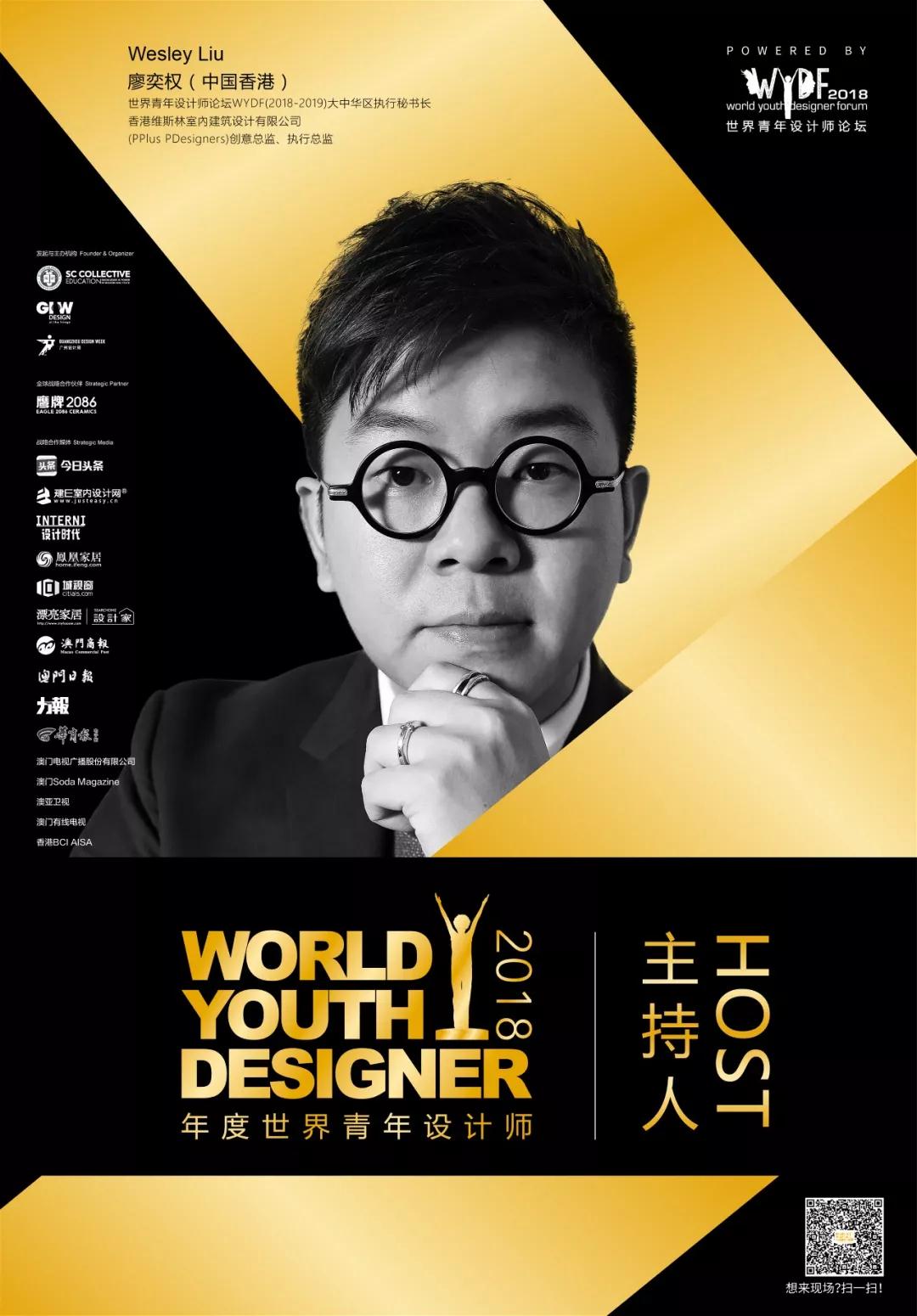 世界青年设计师论坛WYDF(2018-2019)大中华区执行秘书长、香港维斯林室內建筑设计有限公司(PPlus PDesigners)创意总监、执行总监廖奕权(Wesley Liu)担任WYDF2018年度青年设计师评选总决赛主持人。