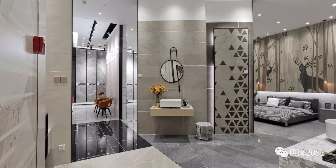 展厅面积:1600㎡(鹰牌2086现代砖+鹰牌陶瓷)