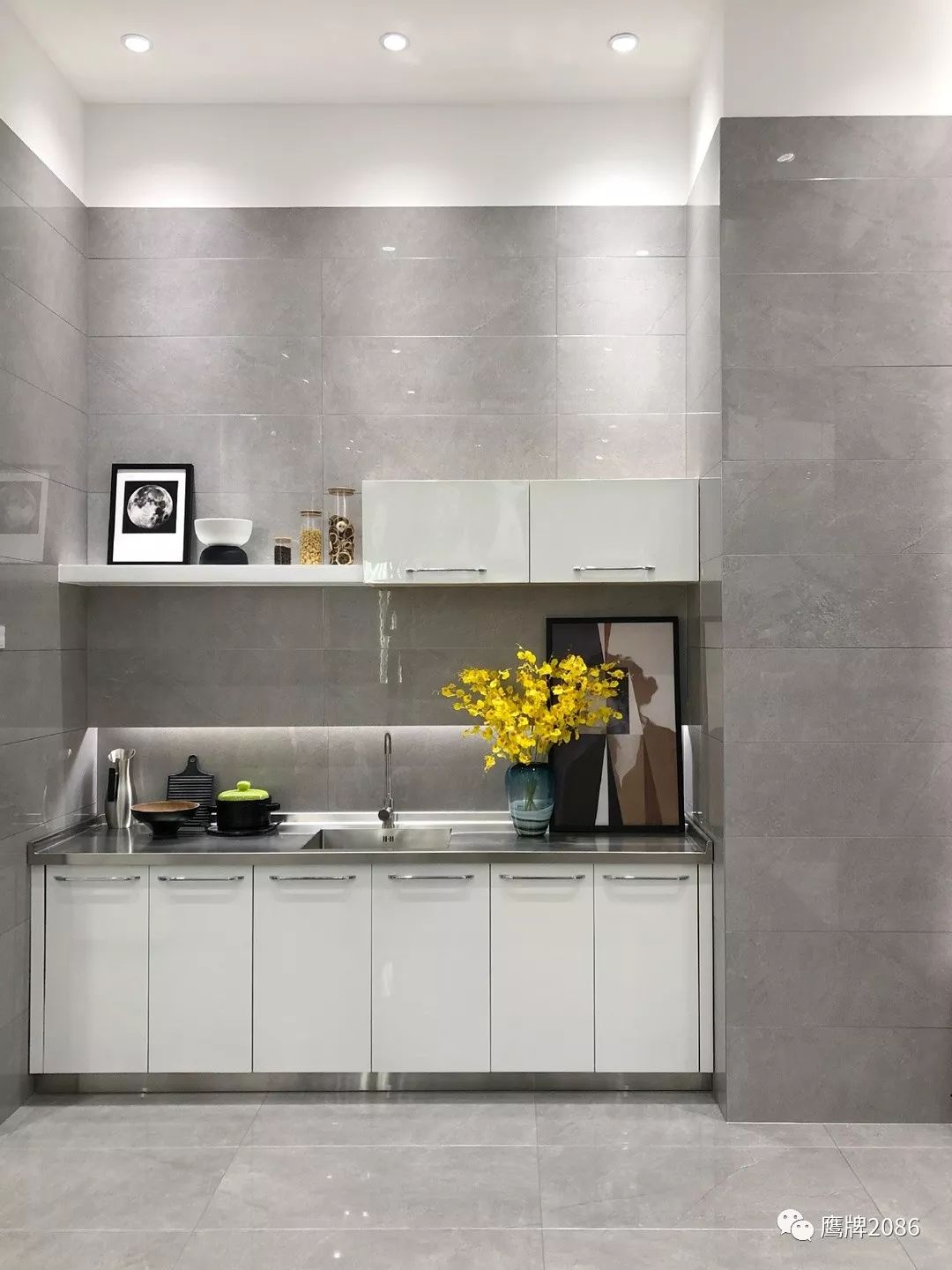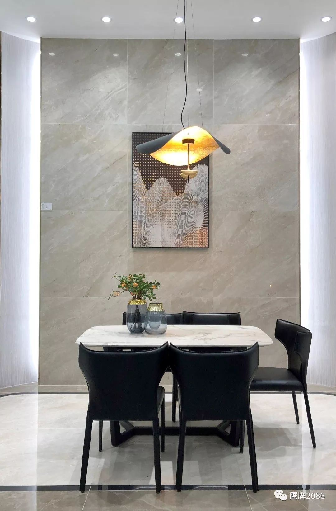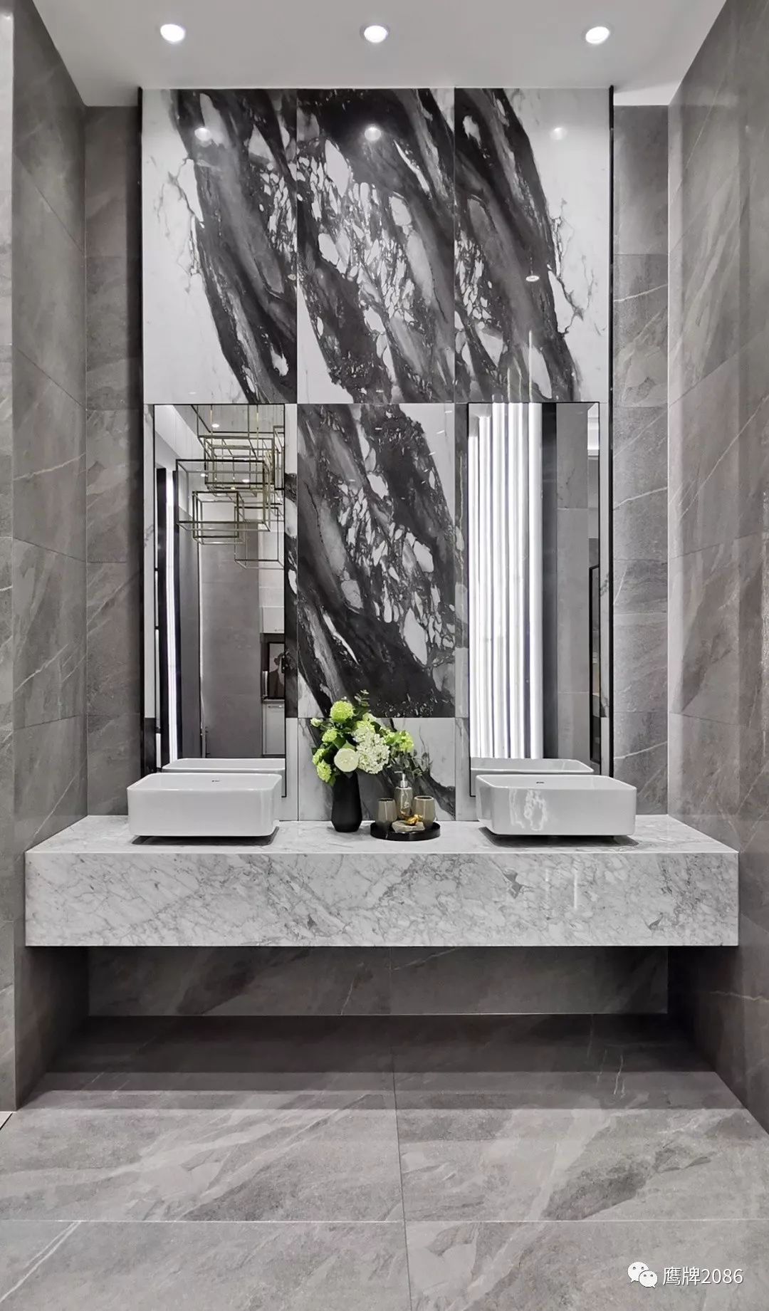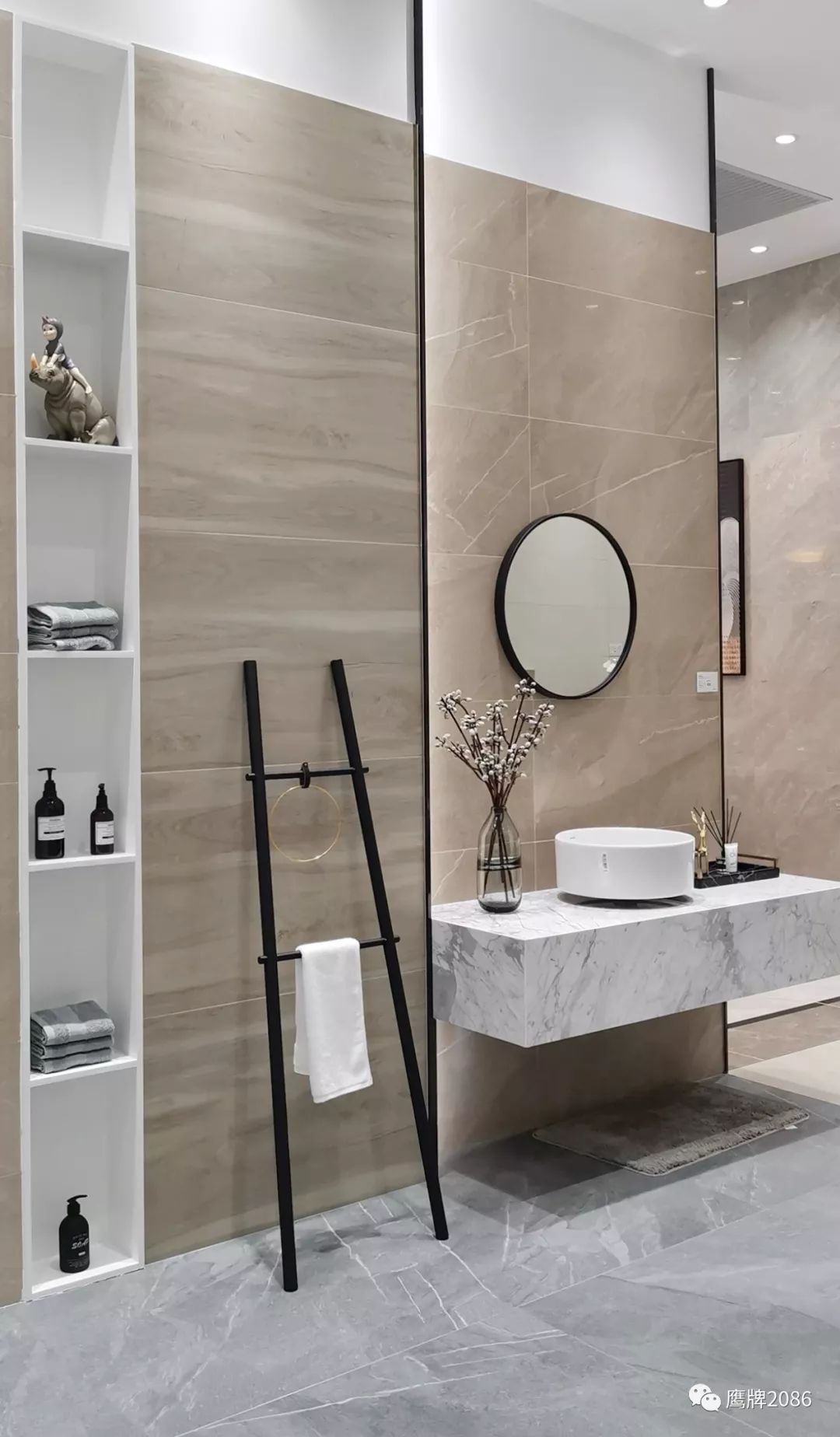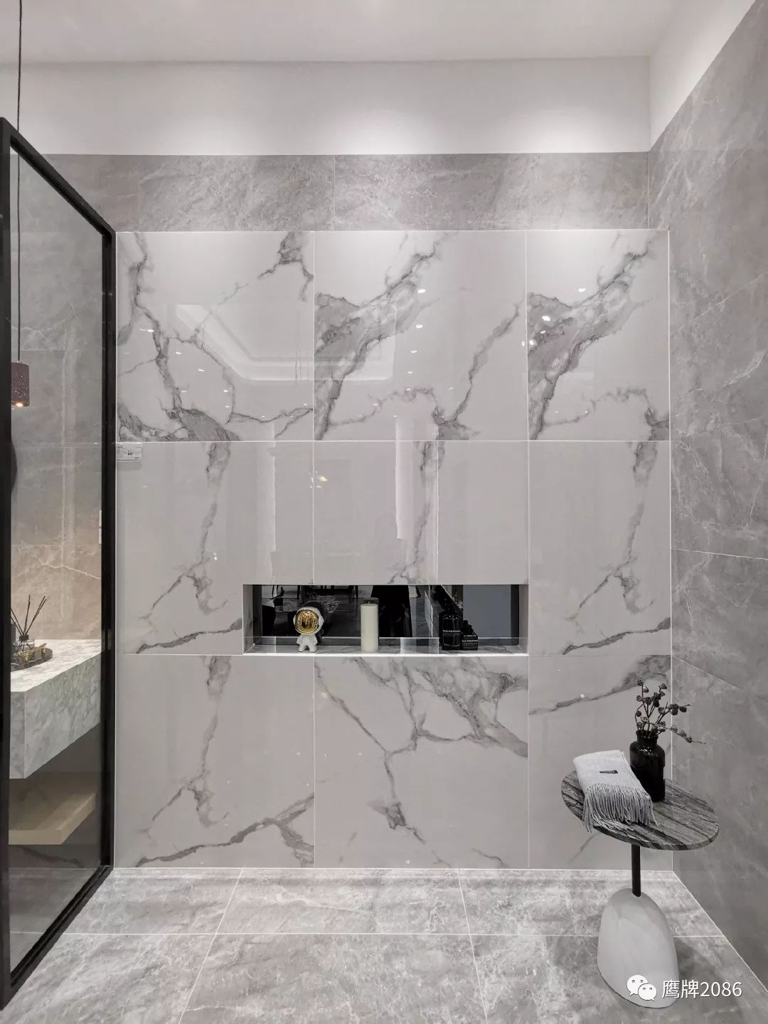 震撼的选材区设计,融合鹰牌2086与鹰牌陶瓷两大品牌,总计上千款产品,直板到顶的产品展示,冷暖色系的渐变排列,视觉舒适又具有震撼力,总有一款适合你。