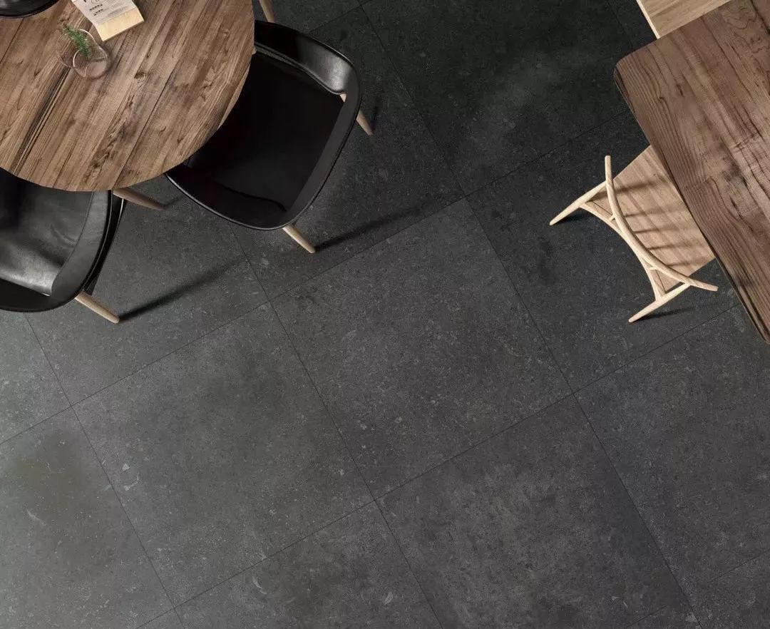今年推出的水墨京砖新品规格以750×750mm为主,厚度20mm,采用干粒深抛工艺,共有12个面。