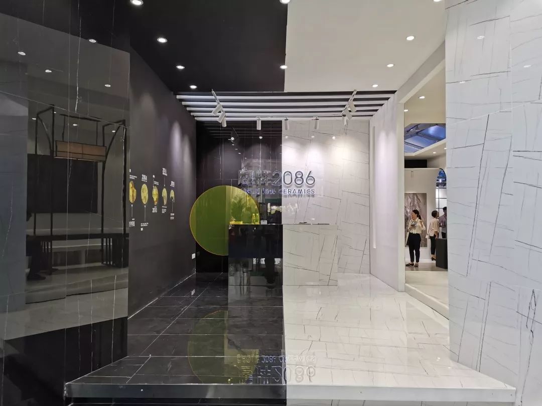 各大品牌百花争鸣,在眼花缭乱的展馆里,鹰牌2086“一抹亮丽的黄”吸引观众驻足欣赏。首次在陶博会上亮相的收藏级京砖演绎东方之美,以欢快明朗的黄色点缀,给整个空间增加了趣味性与现代感。