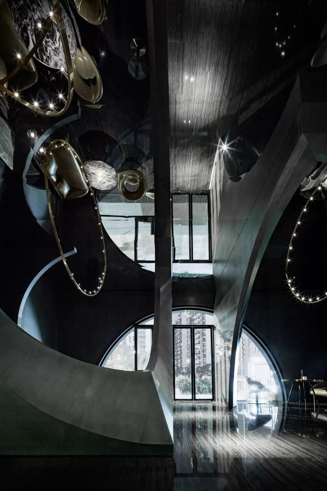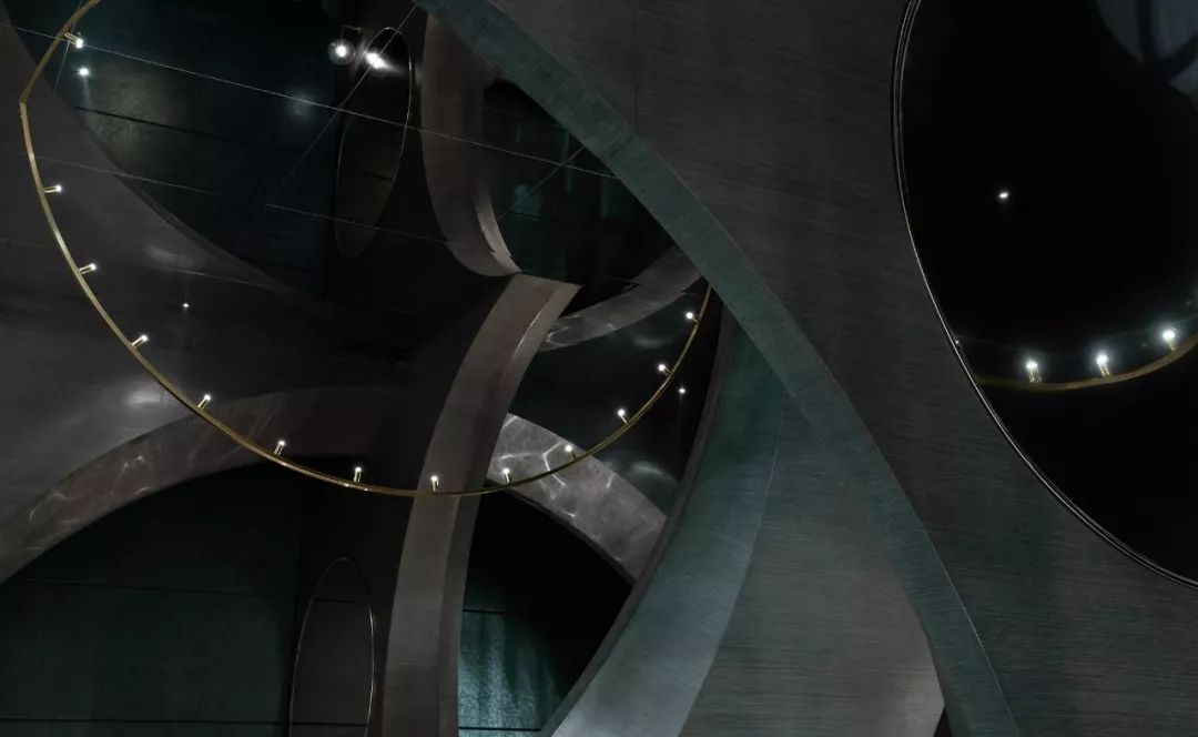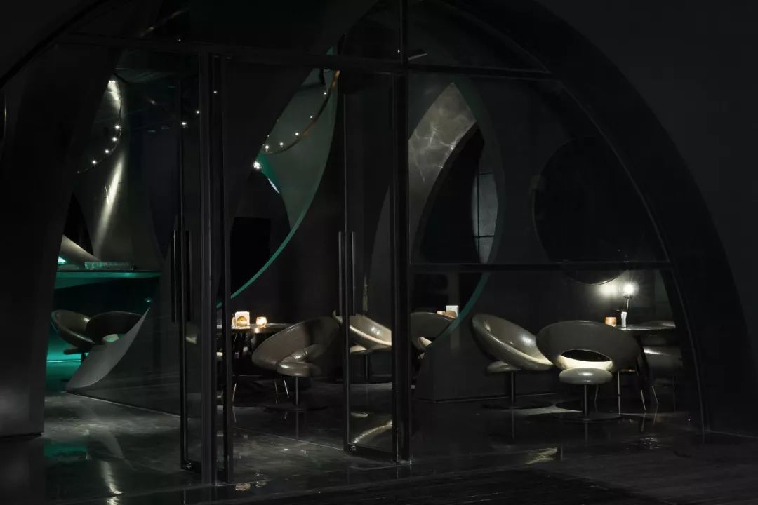 设计师通过原始洞穴的构景,将人与空间,空间与空间之间的界面关系显像化,重建了文明秩序诞生之前的娱乐与交流场域。洞穴的创造,结合球体和墙壁,是整个空间的基本界面。设计使人与空间、空间与空间的关系既独立又相互渗透。