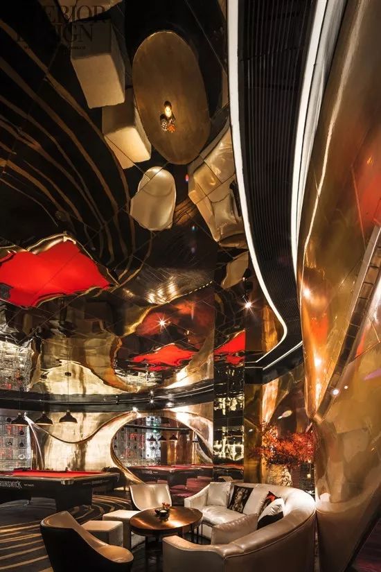 所以我们就把最初的桌球室,做成了现在这个酒吧,正如你们所看到的很多粗糙的材料和光滑的金属构筑成的“墙体”,创造出隔而不断、围合而又穿透的空间属性,有些隐秘的,有些又豁然开朗的,每个空间都有它独特的情感表达。