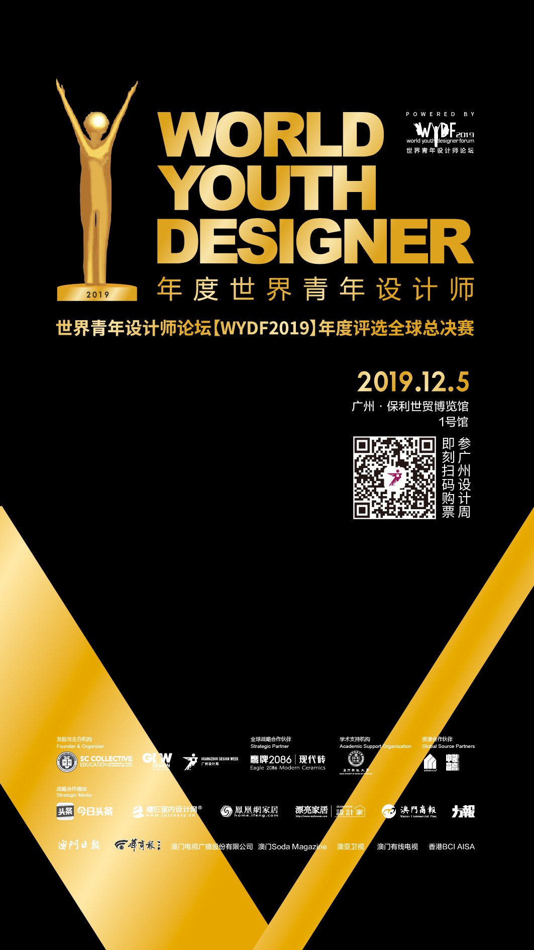 2019年,中国作为东道主国将再度承办“WYDF2019年度评选”全球总决赛,4位全球候选人将齐聚广州,向问鼎【WYDF2019年度世界青年设计师】的至尊殊荣发起冲刺,上演WYDF2019年度终极巅峰对决。