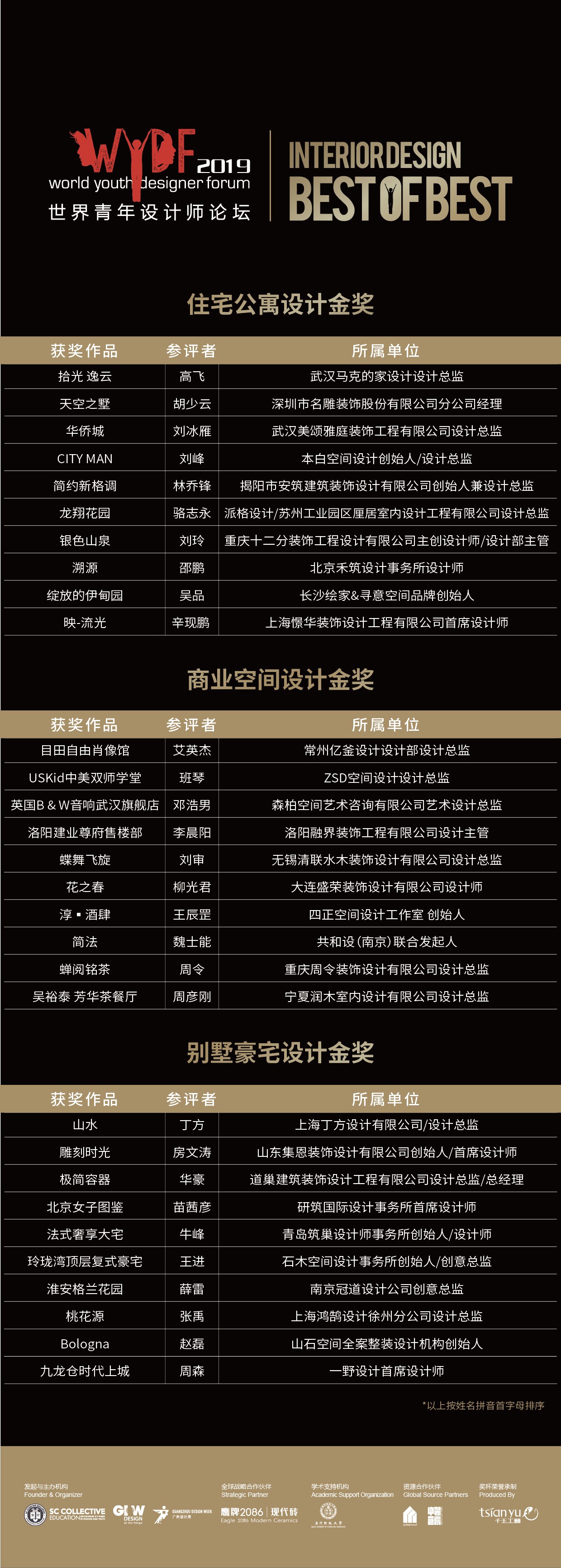 至此,“WYDF2019大中华区年度室内设计金奖” 评选圆满落幕,再次恭喜以上杰出的青年设计师以优质作品荣获本年度大中华区室内设计金奖,成为本年度青年设计标杆人物。