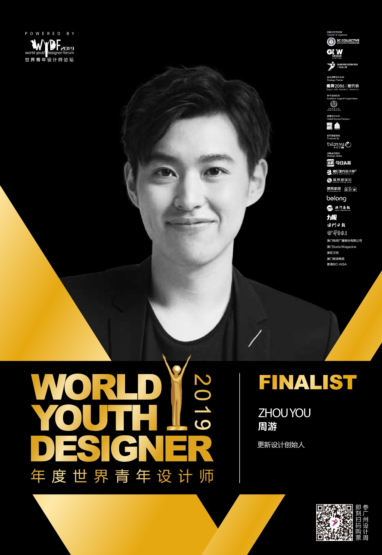 2019年,中国作为东道主国将再度承办“WYDF2019年度评选”全球总决赛,欧洲候选人Freddy Curiél 、美洲候选人RAUL DE LA CERDA 、亚洲候选人增山武、大中华区候选人周游,4位全球候选人将齐聚广州,向问鼎【WYDF2019年度世界青年设计师】的至尊殊荣发起冲刺,上演WYDF2019年度终极巅峰对决。