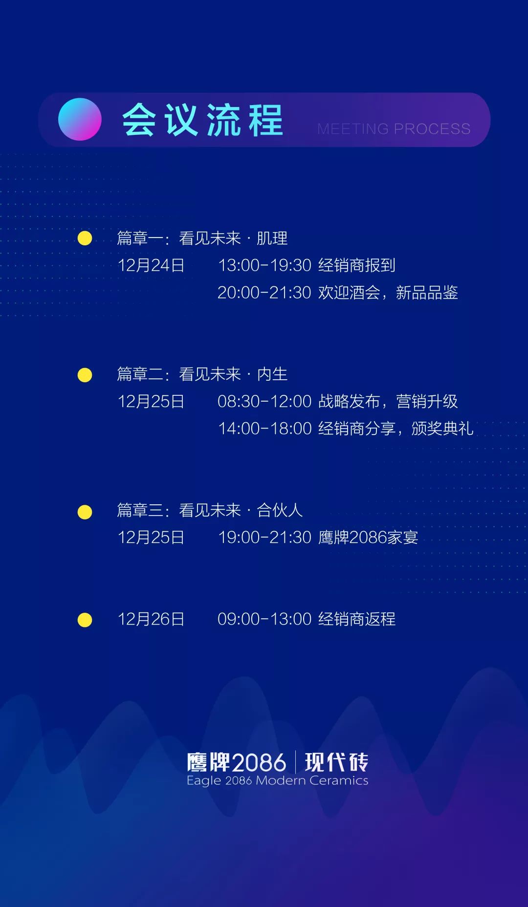 12月25日,鹰牌2086三周年庆典暨品牌未来大会,特邀三位优秀经销商前来分享他们成功的经验,在看见未来的道路上成为一盏明灯。