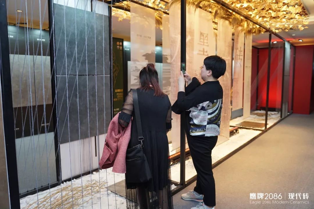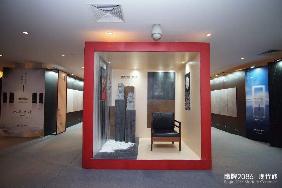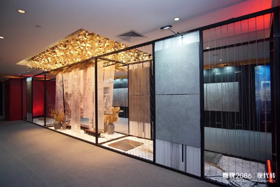 在市场的认可和好评声中,水墨京砖第三代——艺术级·水墨京砖在年会前呼之欲出,本次品牌大会推出的新品还有【意象青花】【素色】【缪斯】以及800×2600mm的【浩瀚之境】。大会以“水墨京砖”为主题,搭建了一个极具古韵的新品展示区,策划了一场蕴含文化的新品发布礼。