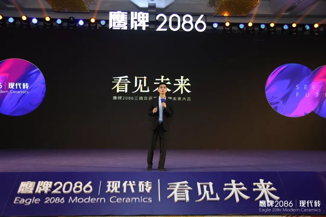 广东鹰牌陶瓷集团副总裁陈贤伟以风趣幽默的演讲风格,分享集团对鹰牌2086的战略布局及未来期许,在分享的最后,陈总更以一句“鹰牌2086离2086年还有67年”结束,振奋人心。鹰牌2086三周年,我们一起看见未来,看见2086!