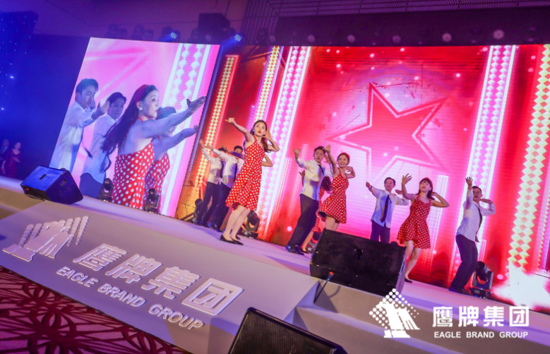 鹰牌营销中心的劲爆歌舞串烧为2020鹰牌春晚揭开第一个篇章,帅哥美女们的劲歌热舞瞬间把春晚现场点燃。