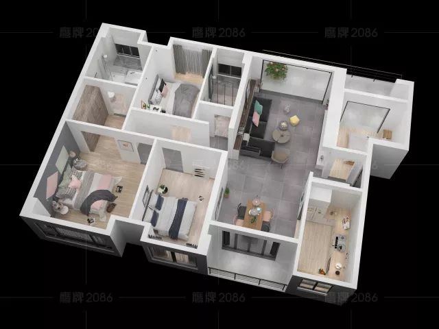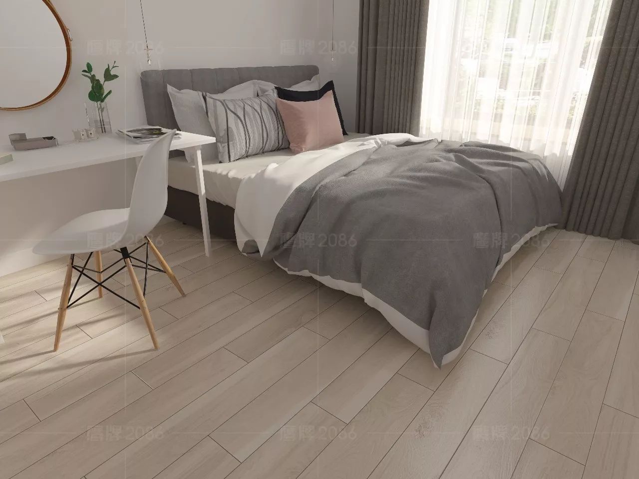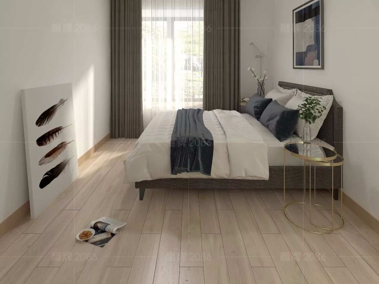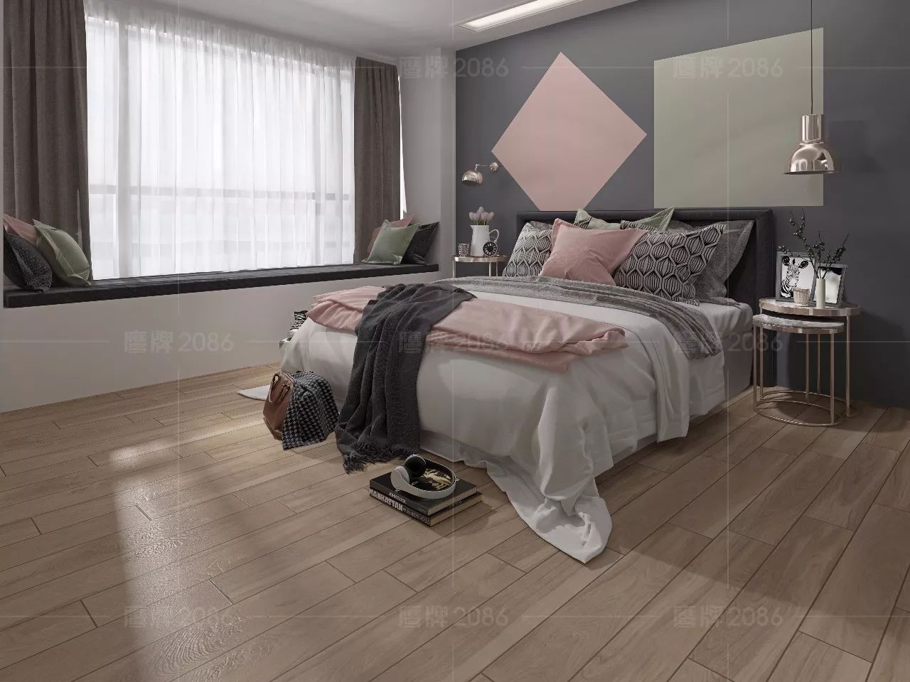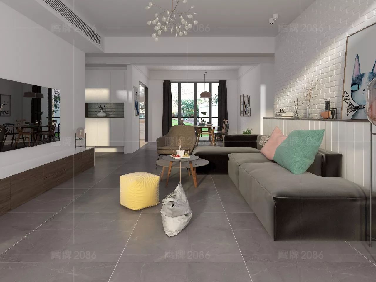 客餐厅地面运用偏深的大地色表现自然之感,线条简洁的家具与色彩明快的软饰,增添空间的灵动与欢快,卧室则用木纹砖打造温馨、亲切之感,体现轻松舒适的空间氛围。整体空间的家具多选用原木材质,原木本身所具有的柔和色彩、细密质感以及天然纹理,展现出一种朴素、清新的原始之美,代表着北欧独特的风格。