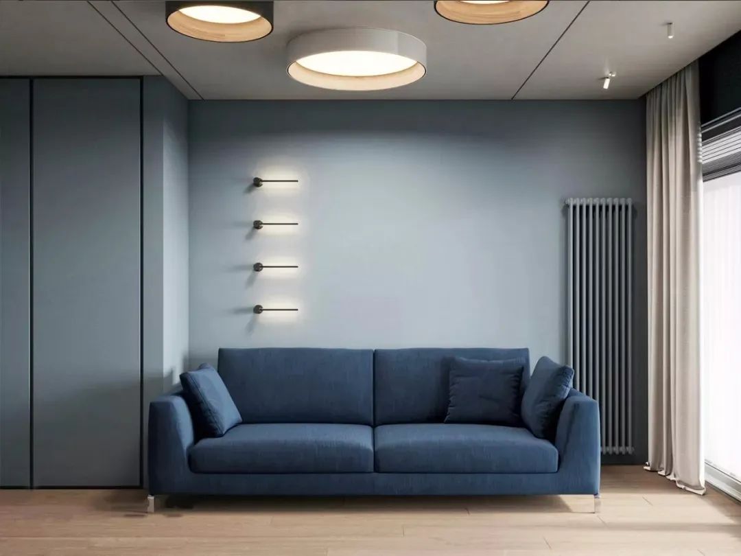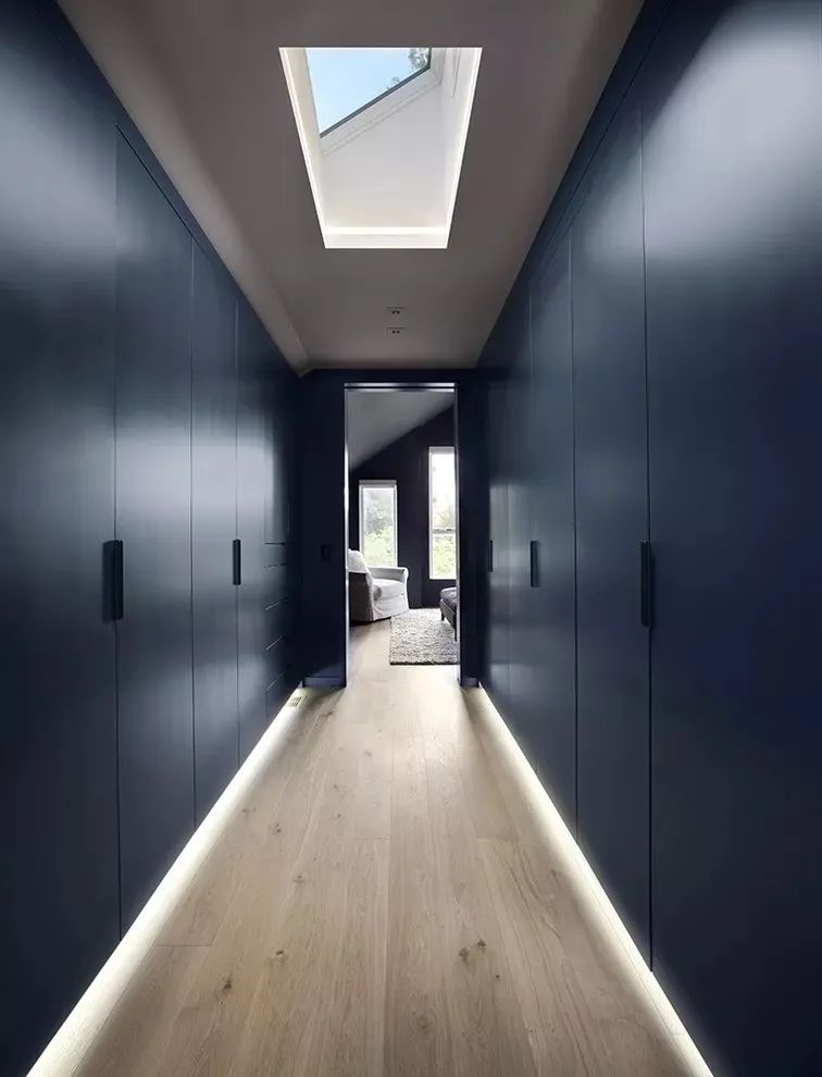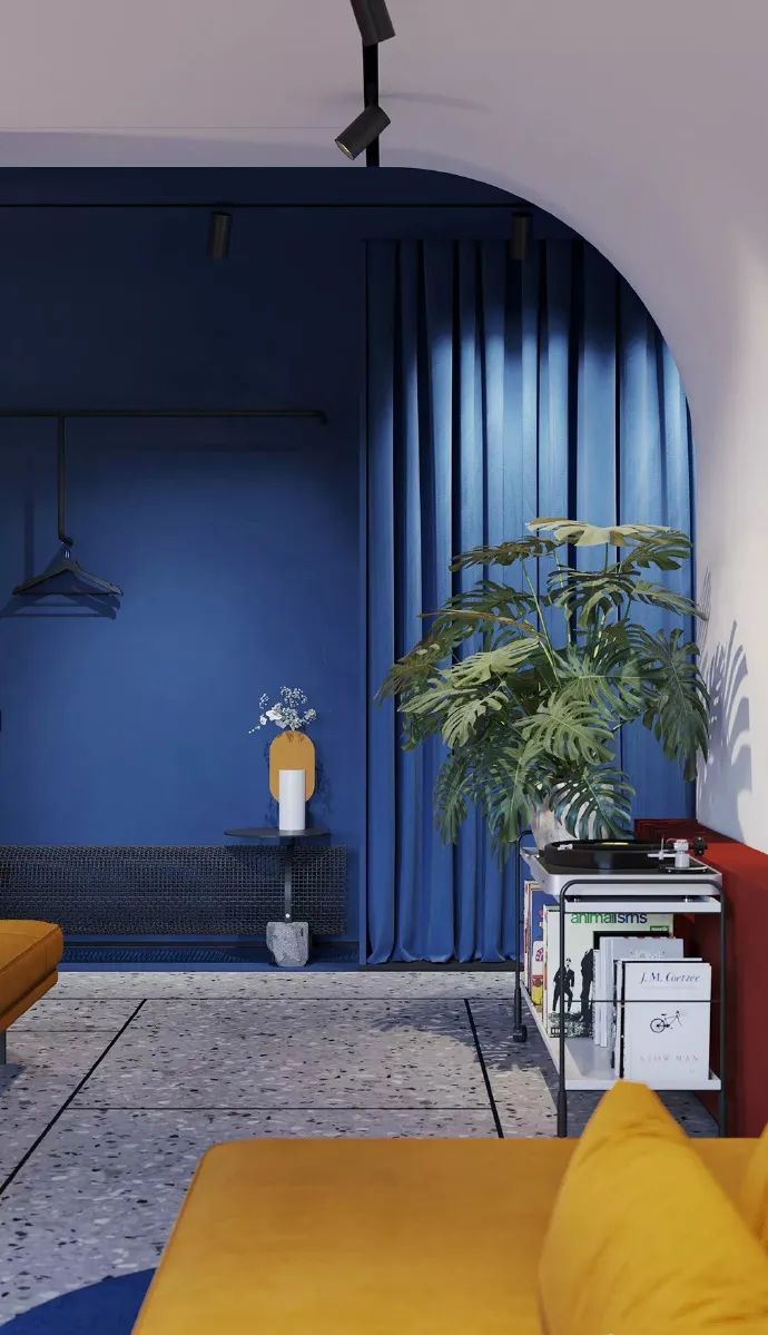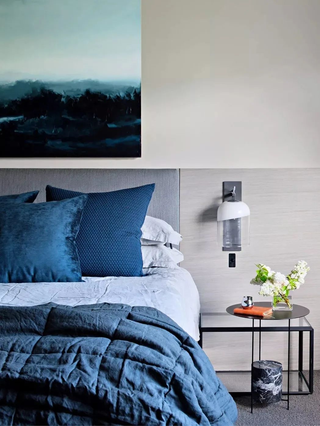 一抹蓝色的墙面,营造沉稳豁达的空间氛围,给人冷静理智的暗示,既可以消除身心疲惫感,也能帮助我们抚平精神上的焦虑与躁动。