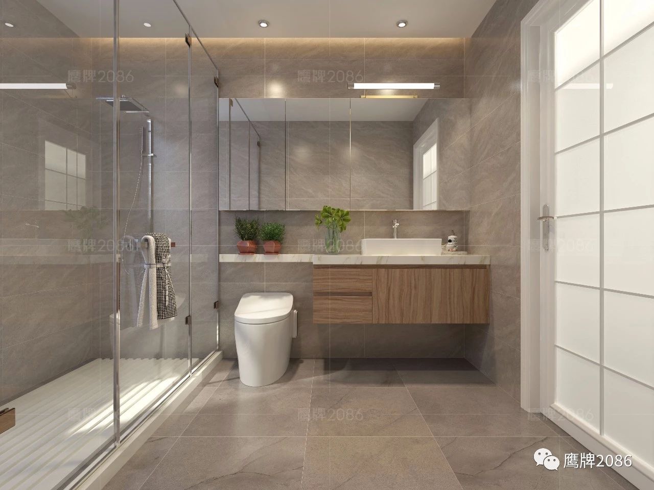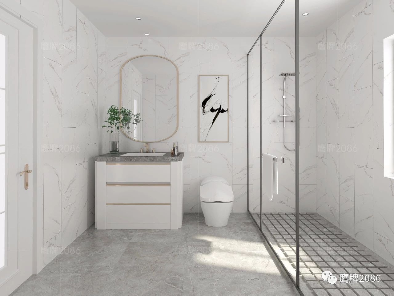 三个卫浴间各具风情,暖黄色温馨、灰色系高级、白色系优雅,不同的空间具有不同的性格,带来多样的空间感。