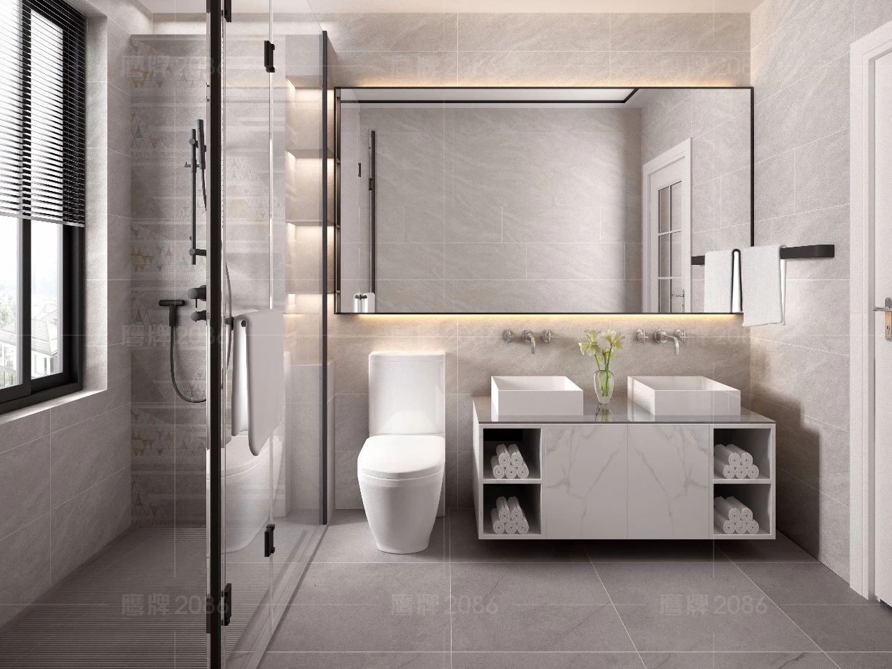 厨卫空间呈现了空间的多样性,黑色金属搭配灰色调,简约大气而充满神秘感,玫瑰金搭配白色调,空间纯净舒适更具时尚感。