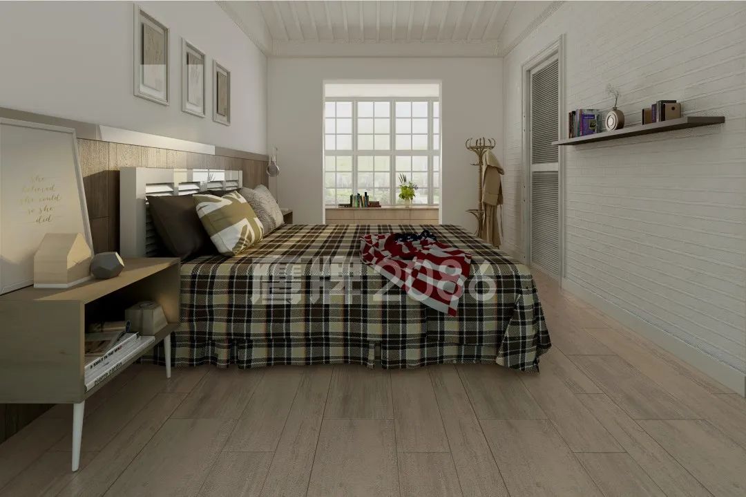 对齐铺贴 | 上下排木纹砖的边缝对齐,带来整洁舒适的视觉感,效果十分清新自然。