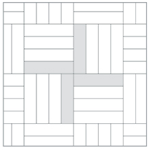 正向铺贴 | 正铺依然是木纹砖的主流铺贴方式,正向铺贴也分为五五贴法(工字铺贴,注:此法不适用于原装边木纹砖)、二八贴