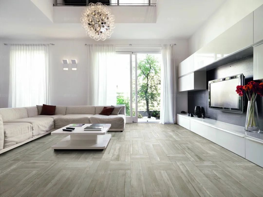 人字铺贴 | 和菱形的鱼骨铺贴不一样,人字形铺法保持木纹砖原本的形状,不需要二次加工,工艺相对简单,同样能搭配出完美视