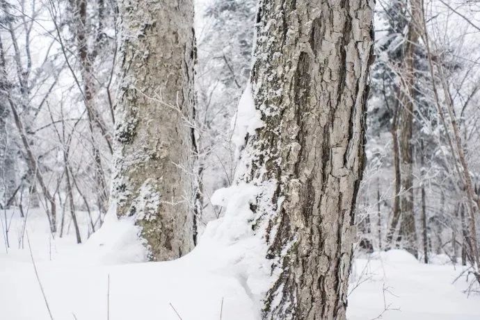 枫桦木 | 枫桦树的表皮粗糙,树龄小时树皮为微红色,全身暴起的树皮很薄嫩,类似于婴儿的皮肤。在万木凋零的冬季,薄如宣纸