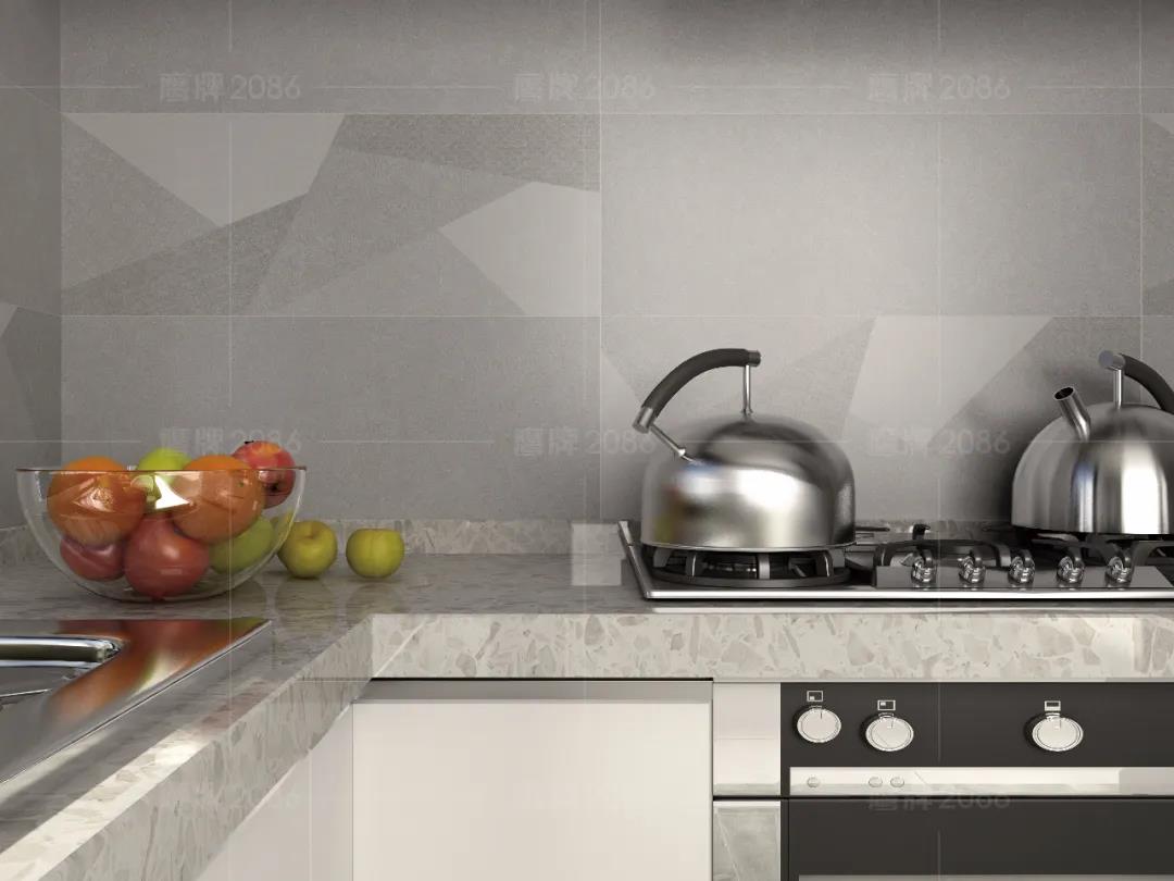 厨房作为水渍油污“重灾区”,厨房用砖一定要功能过关,可以选用专业的厨卫砖,防水防污更耐磨,方便打理。