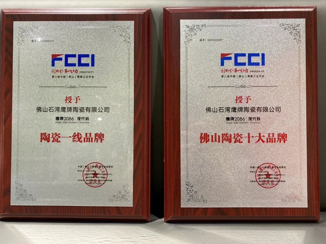 6月6日,由中国工业报社、粤港澳大湾区创新技术应用转化中心、佛山全球创新技术应用转化中心、佛山市禅城区陶瓷行业协会联合举办的“2019-2020第八届中国(佛山)陶瓷工业发展年会”在佛山智慧新城行政服务中心隆重举行。会上进行了第八届陶瓷品牌颁奖授牌典礼,鹰牌2086现代砖凭借优质的产品与服务,荣获“陶瓷一线品牌”和“佛山陶瓷十大品牌”两大称号!