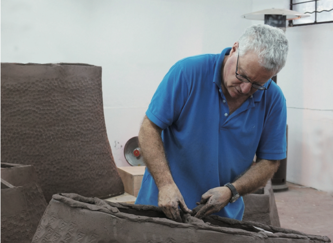 从非洲归来,他越来越热衷于跨文化实践,这种倾向还延伸到了他的工具、原料,以及陶艺创作的异域风格。