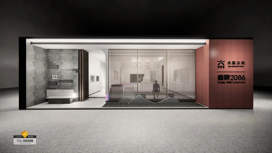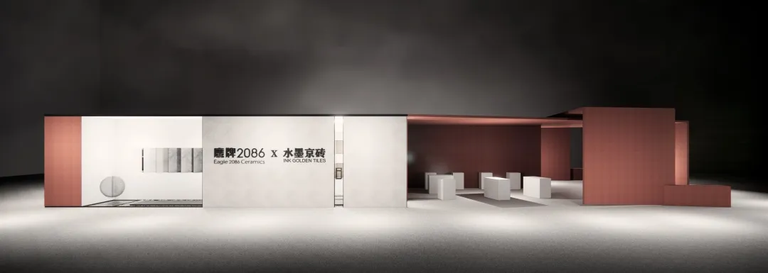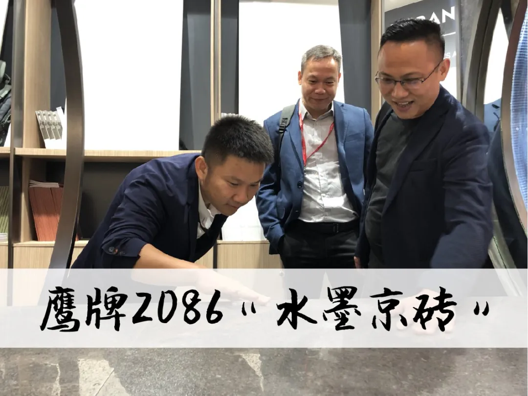 今年,鹰牌2086的展位设计颠覆传统,弱化产品展示,更注重以文化打动观众,融入“水墨京砖”三代产品,把展位塑造成一个“文化馆”,讲述御窑金砖的历史文化,讲述水墨京砖的经典传承。