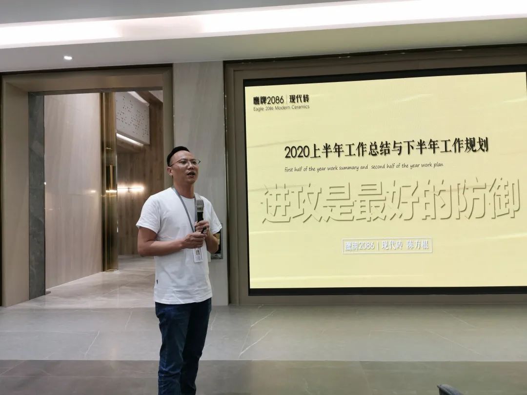 鹰牌2086战略渠道部总监高孝恺对上半年的工作情况做了分析,以重点项目为例,分析目前的工程合作情况和工作重点,并对品牌的产品、设计等方面提出需求和建议,下半年将重点打造符合品牌产品特色的渠道项目,培养提升团队的综合素养。