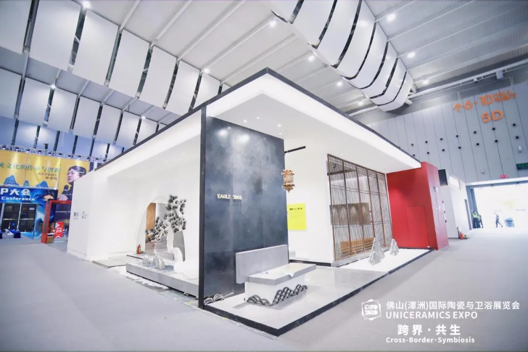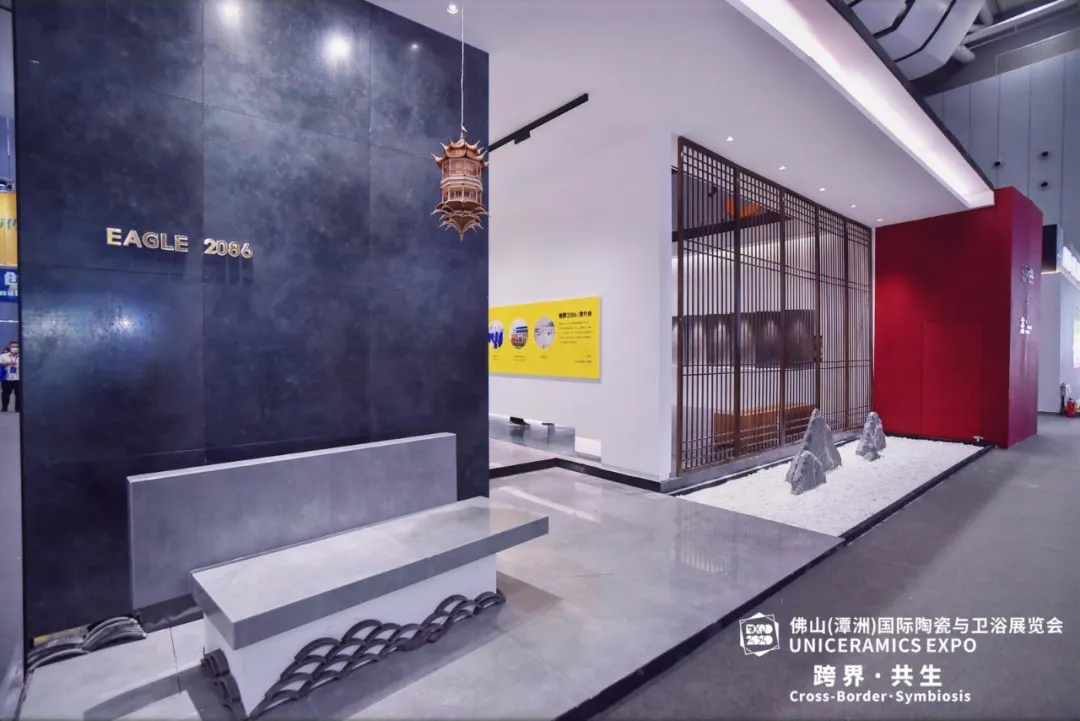 鹰牌2086展位今年选在了5 号馆——原创IP馆,打破常规陶瓷建材商业展位设计,用一款产品,以“博物馆”的形式,打造了一个水墨京砖文化馆,成为本次展会最具话题性和热度的展位之一。