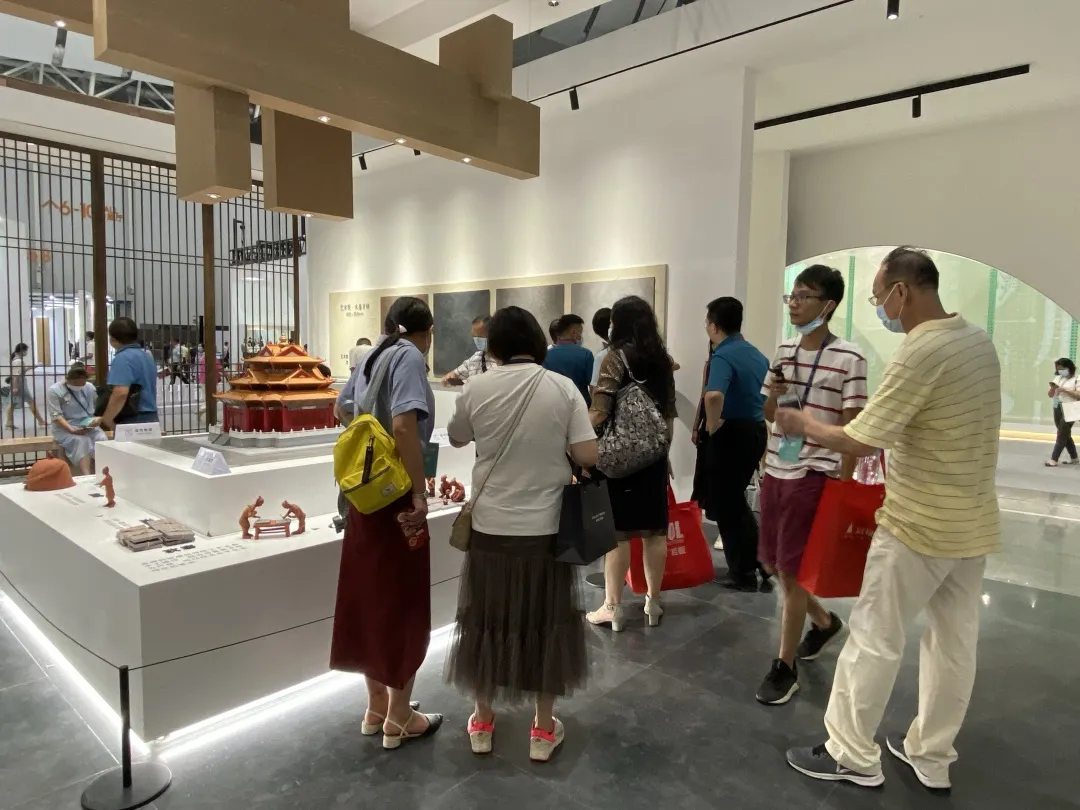 故宫研究院院长单霁翔、景德镇陶瓷大学党委书记梅仕灿、副校长王海波等纷纷来展位打卡,领略传统古法金砖和现代水墨京砖的艺术之美。
