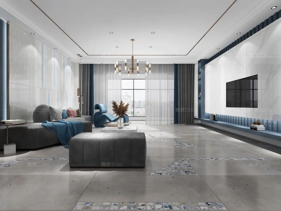 意象青花,灵感来自中国传统青花瓷,青花的蓝,水墨的韵,工业的肌理,简约的高级灰,将青花元素应用到现代瓷砖材料,东方元素与现代潮流的结合,演绎现代生活的东方情怀。