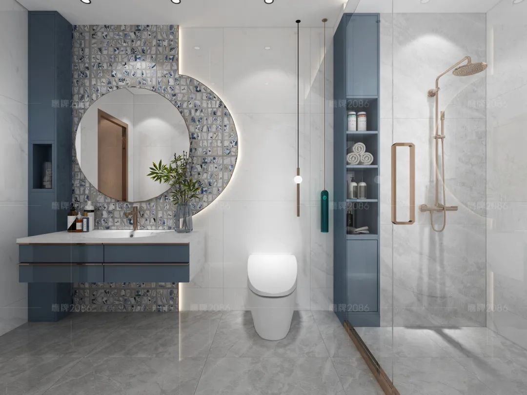 鹰牌2086「东方集」系列包含“水墨京砖”和“意象青花”两个子系列产品,分别以“苏州御窑出土的故宫金砖”和“传统青花瓷”为设计灵感,将传统文化元素融入现代瓷砖设计,以现代创意设计传承中国文化。