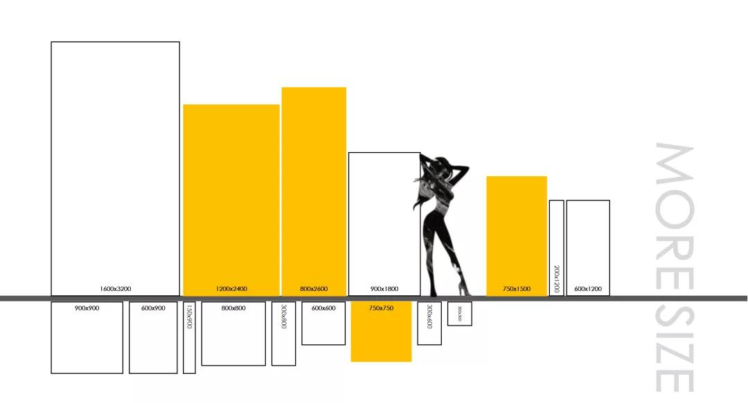 在控制数量的同时,鹰牌2086发挥无限的思路,科学创造更多规格的可能性。除了大多数常用规格外,还有750*1500mm、800*2600mm、独创750*750mm等特殊规格共19种主流规格,满足更好的居住仪式感与品质感,为每个家庭创造更多元的生活场景。