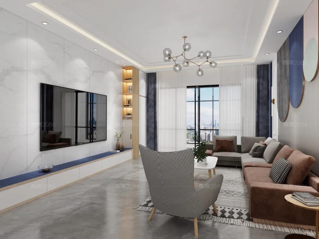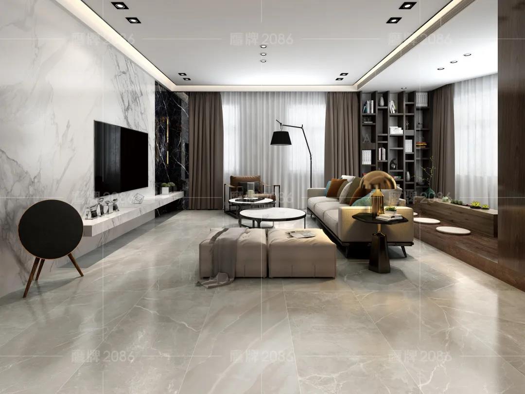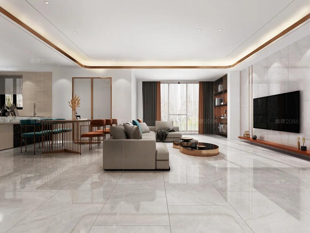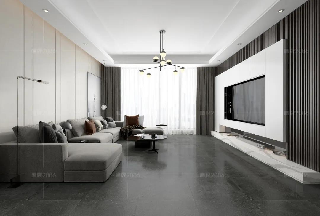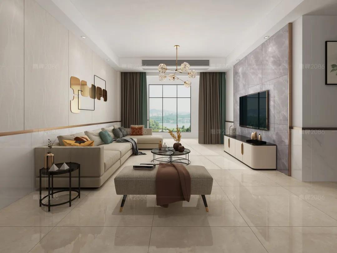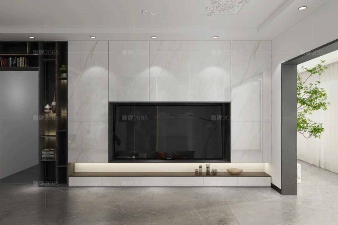 电视背景墙的瓷砖建议选择柔光砖或哑光砖,款式以简约为宜,这样在看电视时不会被晃花眼,低光感度的瓷砖无光污染,让视觉更舒适。
