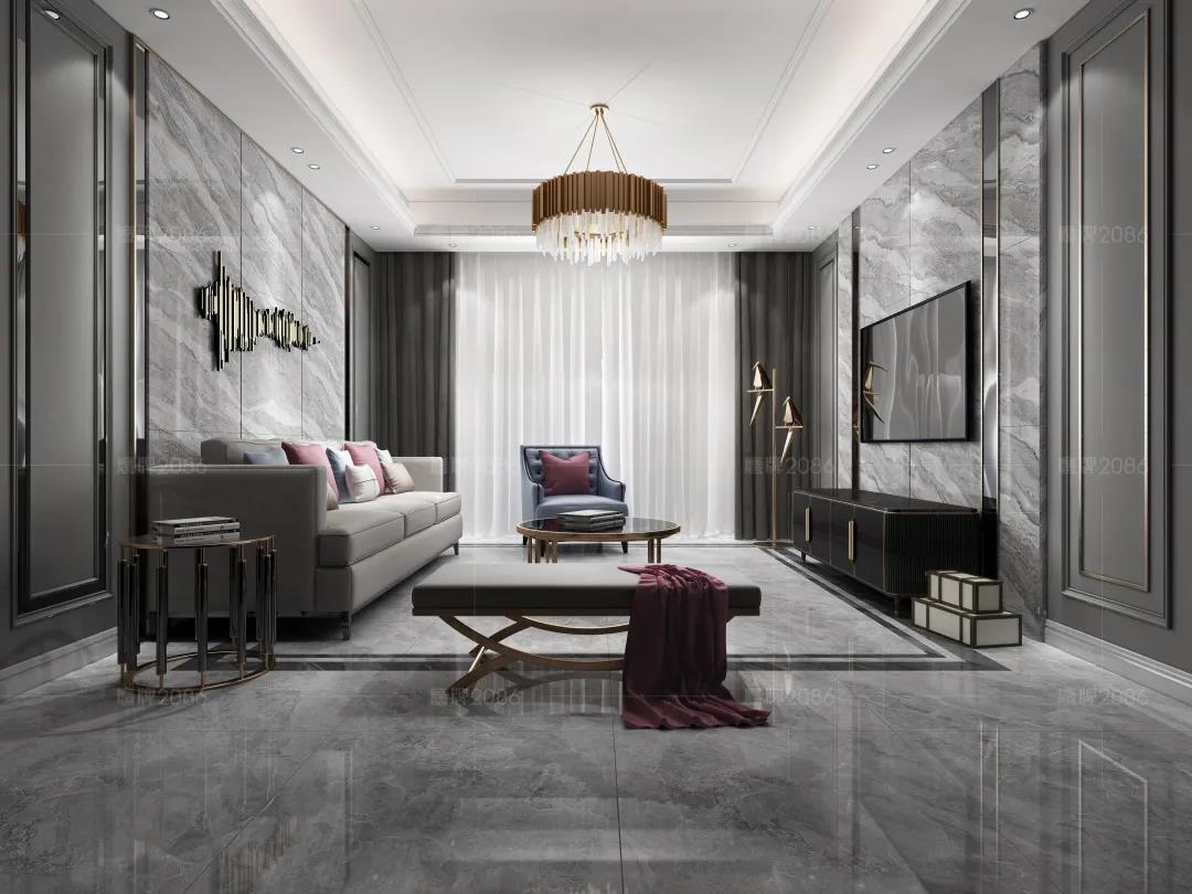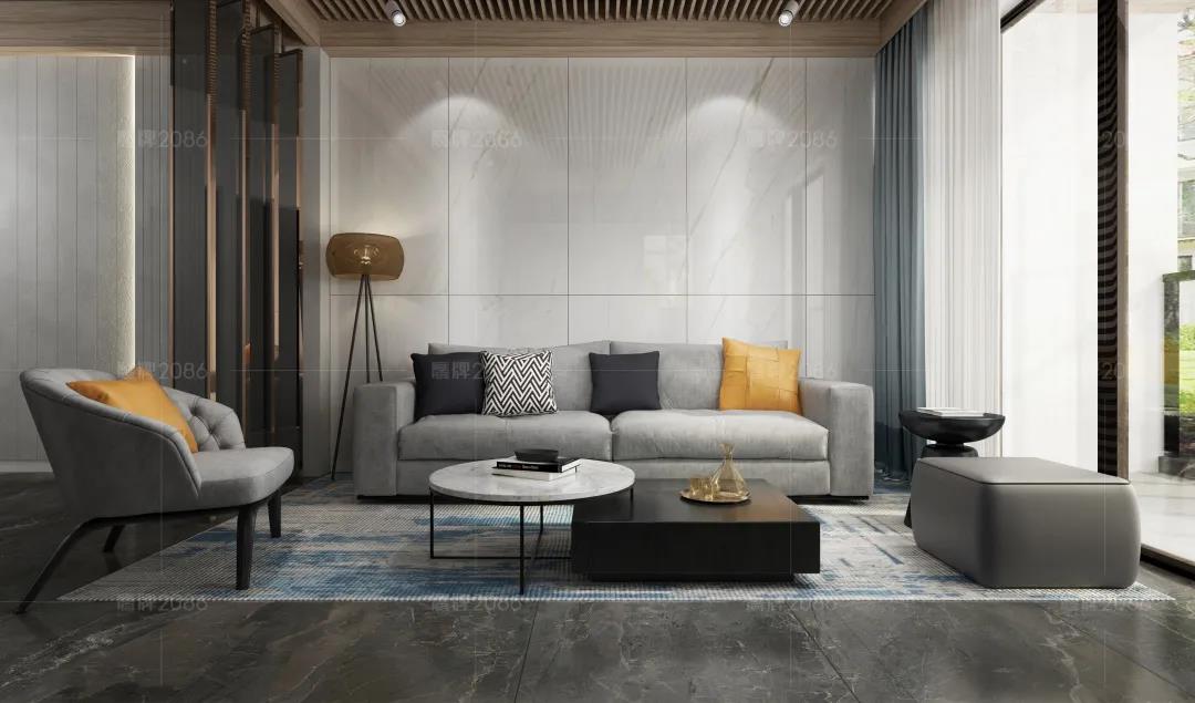大理石瓷砖突破天然大理石存在的瑕疵、色差、裂纹、发黄等缺陷,且花色纹理的逼真程度宛如浑然天成。沙发背景墙不同于电视背景墙,可以选择纹理丰富的大理石瓷砖,搭配巧妙的灯光设计更显格调。