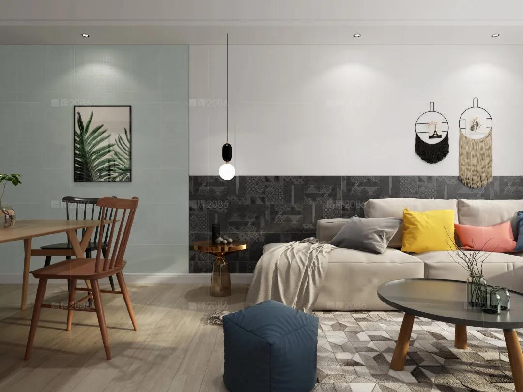 先进喷墨技术,使瓷砖在色彩领域上更出众,丰富不止黑白灰。利用瓷砖本身的颜色碰撞出多彩的沙发背景墙,不规则的包边细节,使空间看起来更有活力,更出彩。