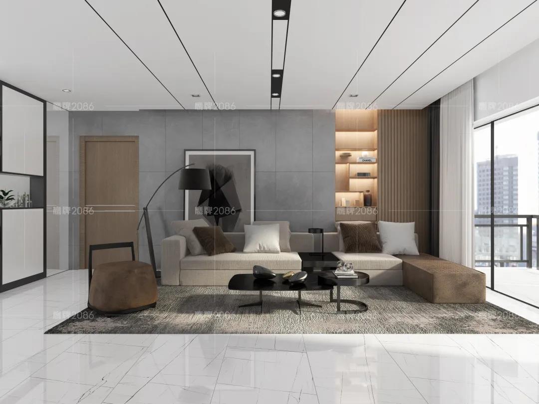 追求简洁的业主可以选择以岩板台面或木制隔板代替电视柜,悬空设计使空间轻盈,放上一两个装饰艺术品,更显优雅高档。