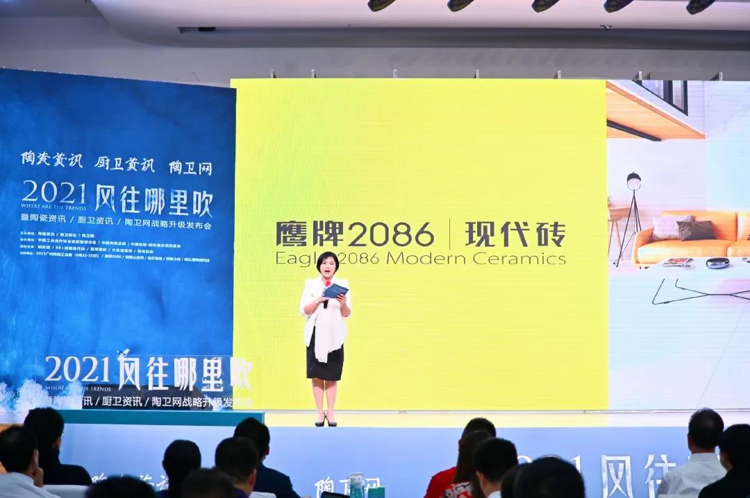 精彩的演讲过后,进行2021年度陶瓷品牌表彰环节。陶瓷一线品牌鹰牌2086现代砖凭借出色的品牌影响力、产品原创力和设计力,获得由陶瓷资讯颁发的“2021年推荐陶瓷品牌”荣誉荣誉证书!