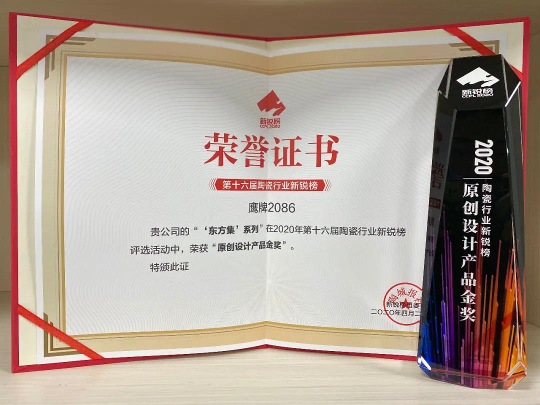 借此,鹰牌2086「东方集」系列荣获第五届中国意大利陶瓷设计大赛金奖、第七届中国意大利陶瓷设计大赛金奖、第十六届中国陶瓷行业新锐榜原创设计产品金奖等多个奖项。