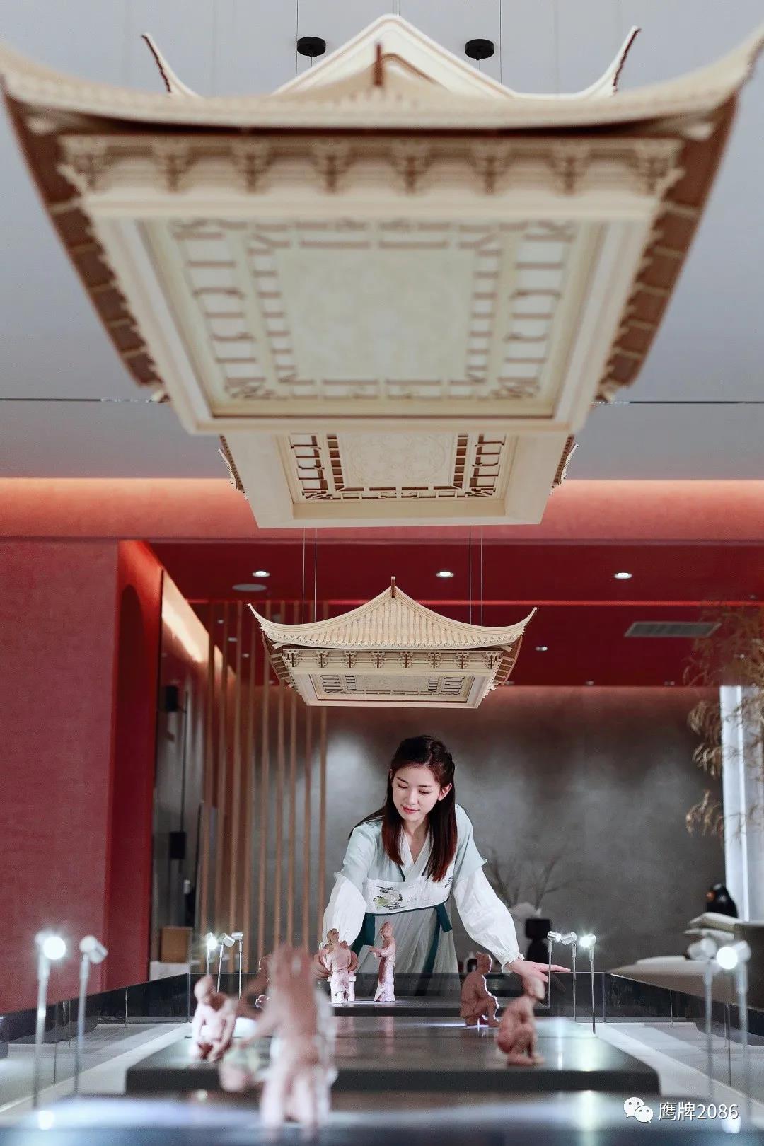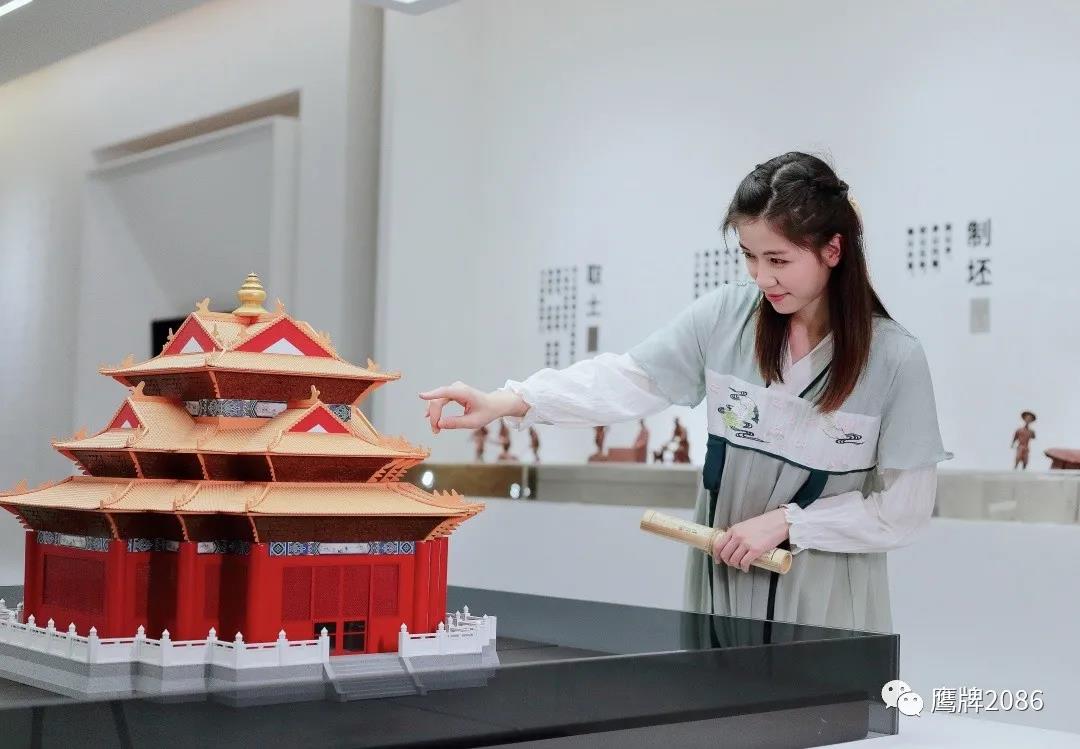 这里最大的亮点就是故宫模型和吊顶,整个空间讲述了御窑金砖的历史文化,值得细细品鉴。“穿越而来”的汉服小姐姐好像在探索什么,对一切事物都感到新奇。
