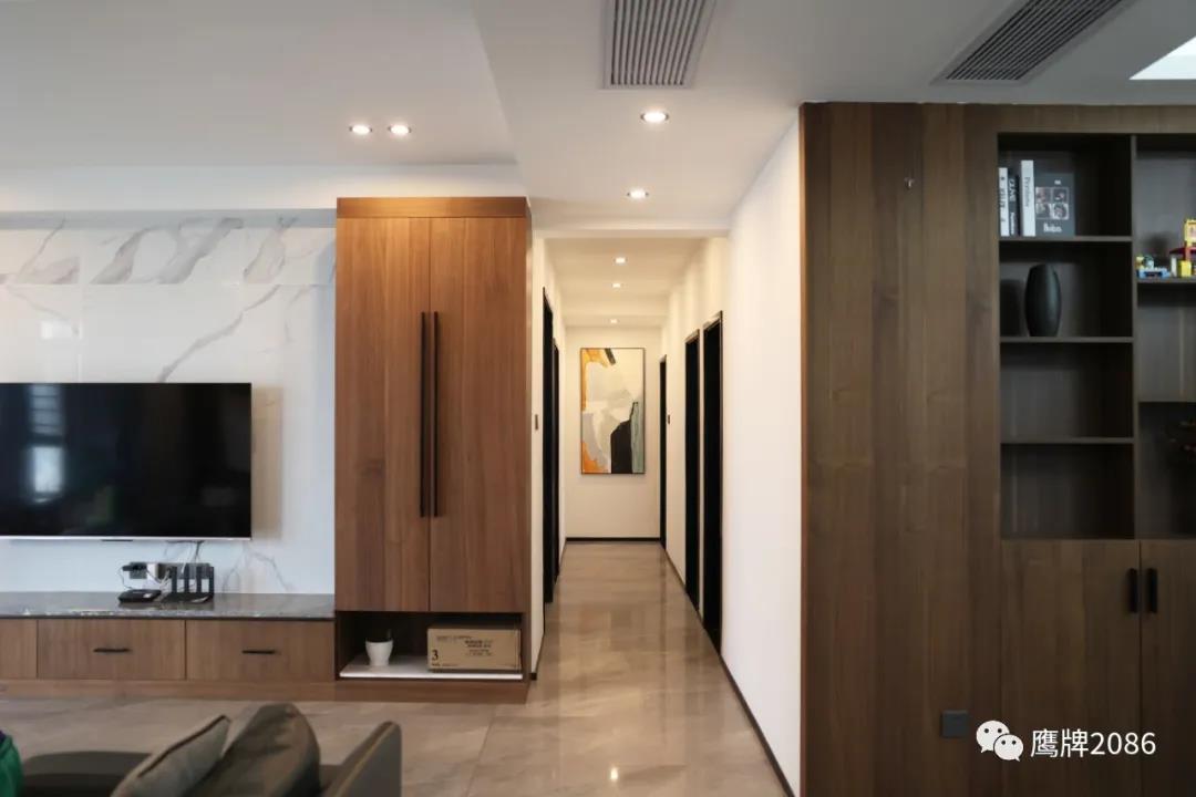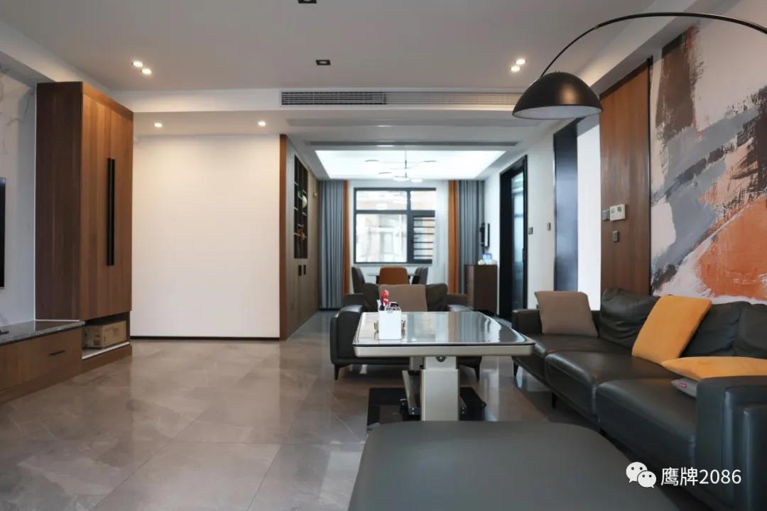 本次家装案例是现代简约风格,面积180㎡,整体空间开阔通透,灰色系瓷砖搭配木色和暖黄色,整体空间温馨时尚,富有活力。