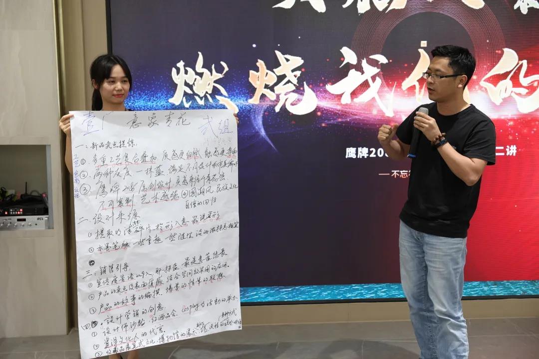 陶瓷一线品牌鹰牌2086持续营造良好学习气氛,为打造专业团队做好内部培训会,以促进品牌加速成长!没有学习力,就没有竞争力!