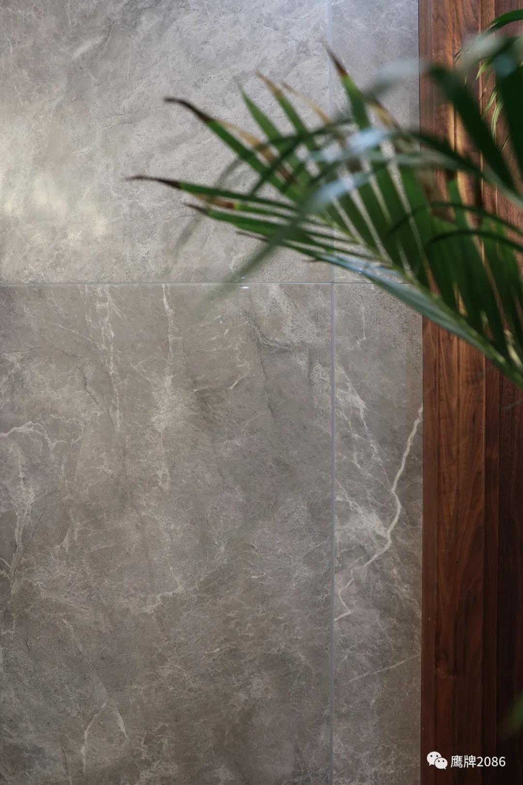 由于软装家具的形式丰富,设计师在瓷砖选择上选择了简约百搭的三款灰色系瓷砖,经典低调,使空间风格更加和谐统一。