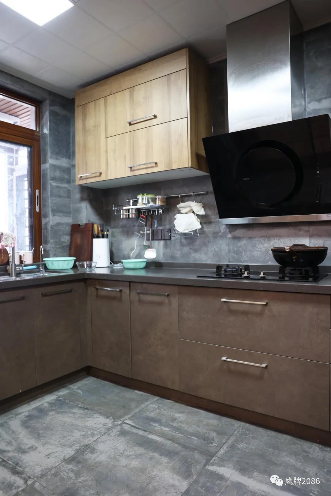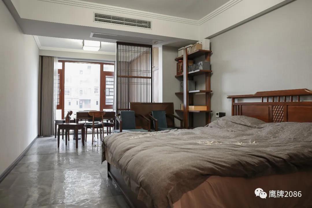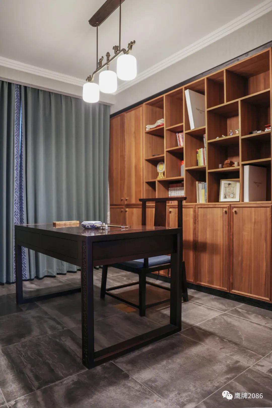 水墨京砖系列产品依旧占据了很大部分面积,书房、主卧、主卧阳台、次卧、文娱室的地面,以及厨房的墙地面,都使用了纪念版·水墨京砖产品,文化与艺术,生活与设计的巧妙融合,悠悠岁月,温柔绵长。