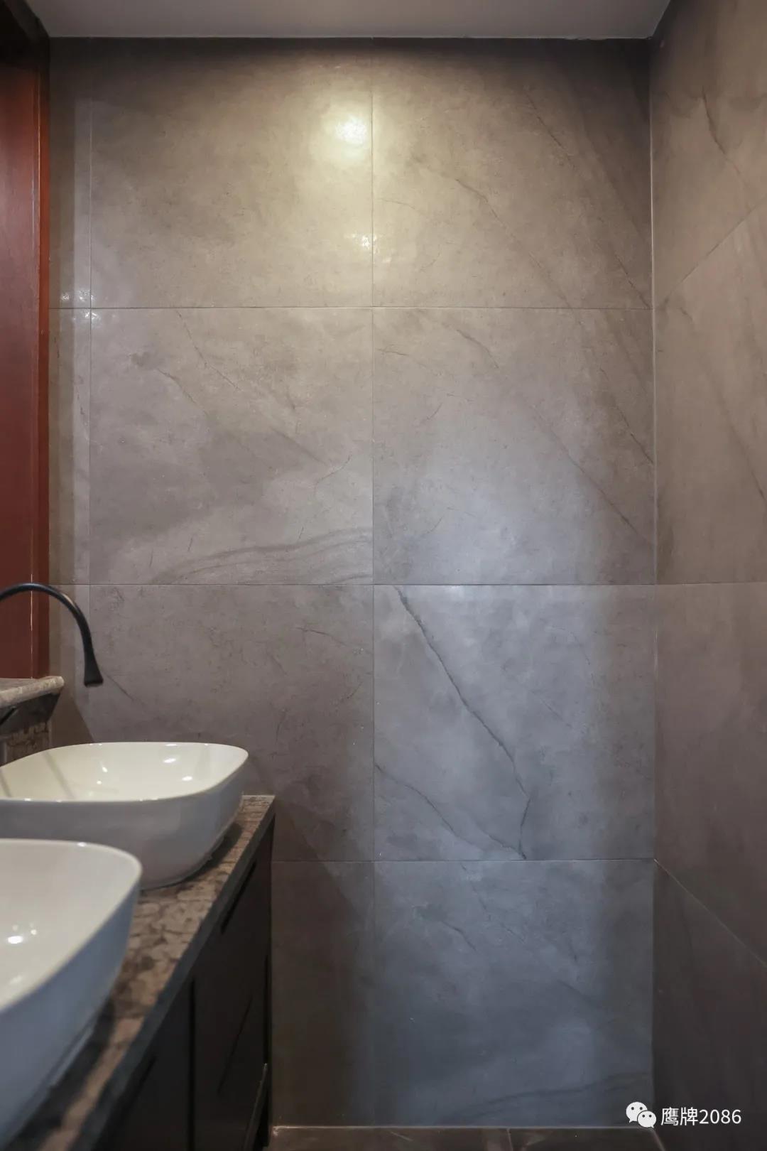 业主对水墨京砖系列产品情有独钟,以至于最初想全屋使用水墨京砖产品。最后在设计师的建议下,用水墨京砖结合经典大理石瓷砖进行全屋方案的瓷砖搭配设计。